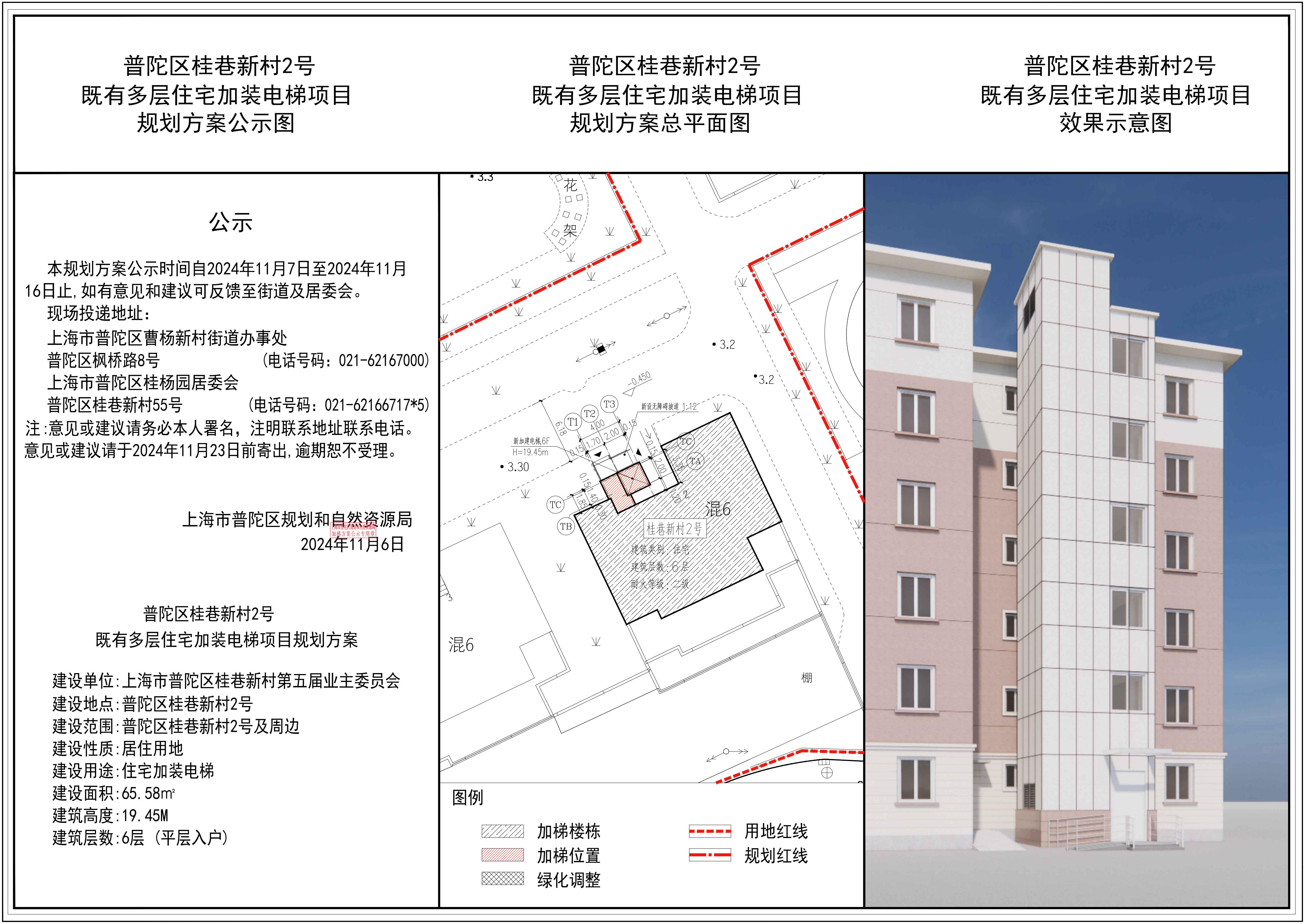 普陀区桂巷新村2号既有多层住宅加装电梯项目规划方案公示