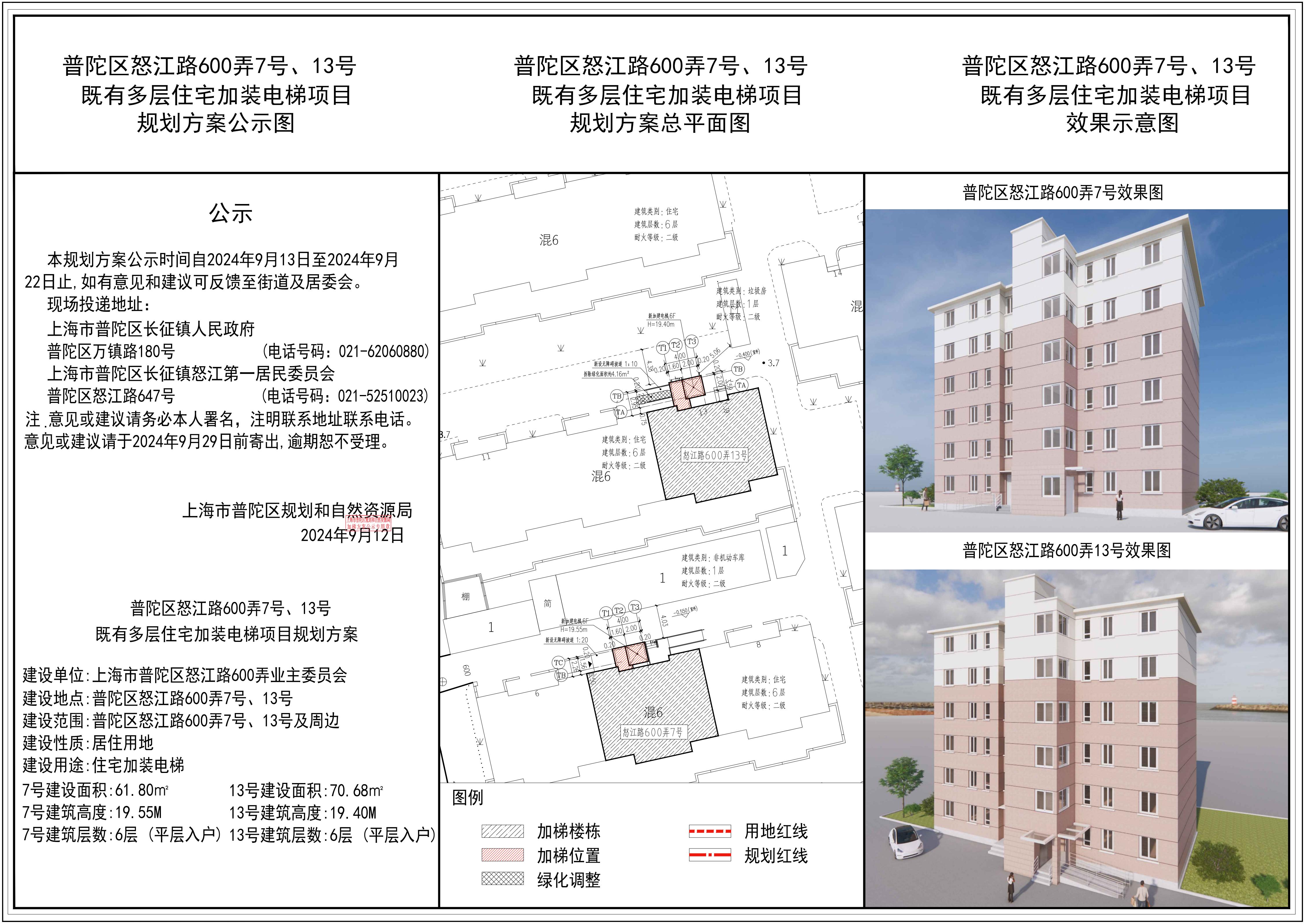 普陀区怒江路600弄7号、13号既有多层住宅加装电梯项目规划方案公示
