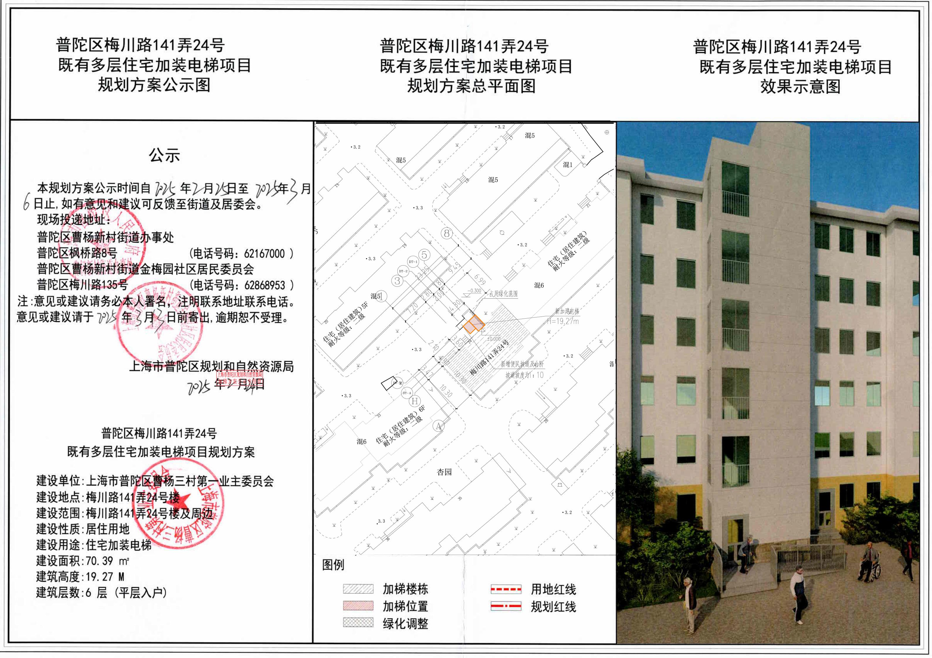 普陀区梅川路141弄24号既有多层住宅加装电梯项目规划方案公示
