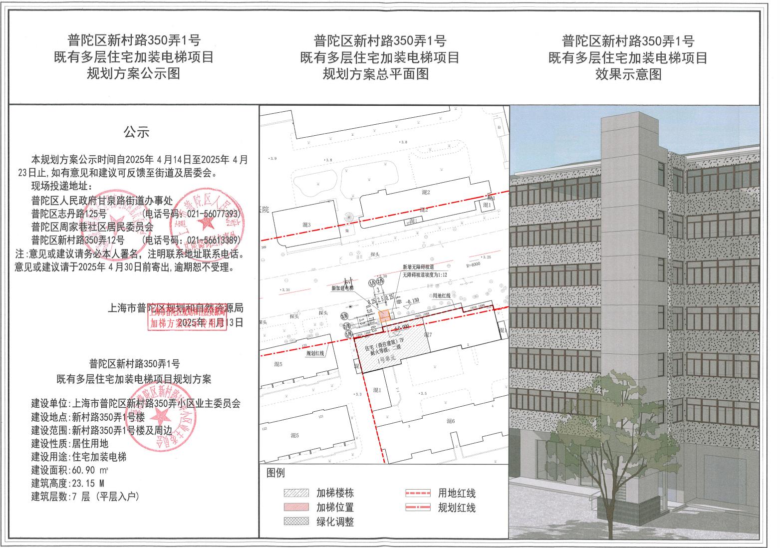 普陀区新村路350弄1号既有多层住宅加装电梯项目规划方案公示