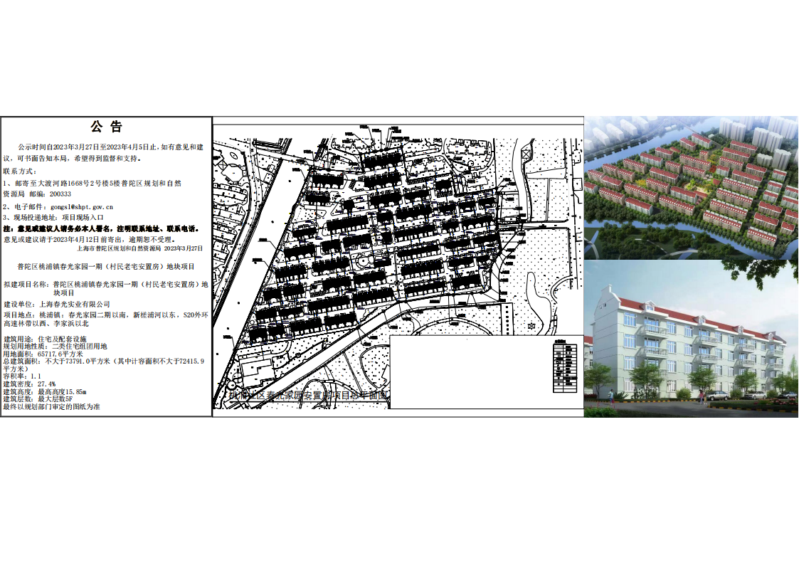 普陀区桃浦镇春光家园一期(村民老宅安置房)地块项目公告