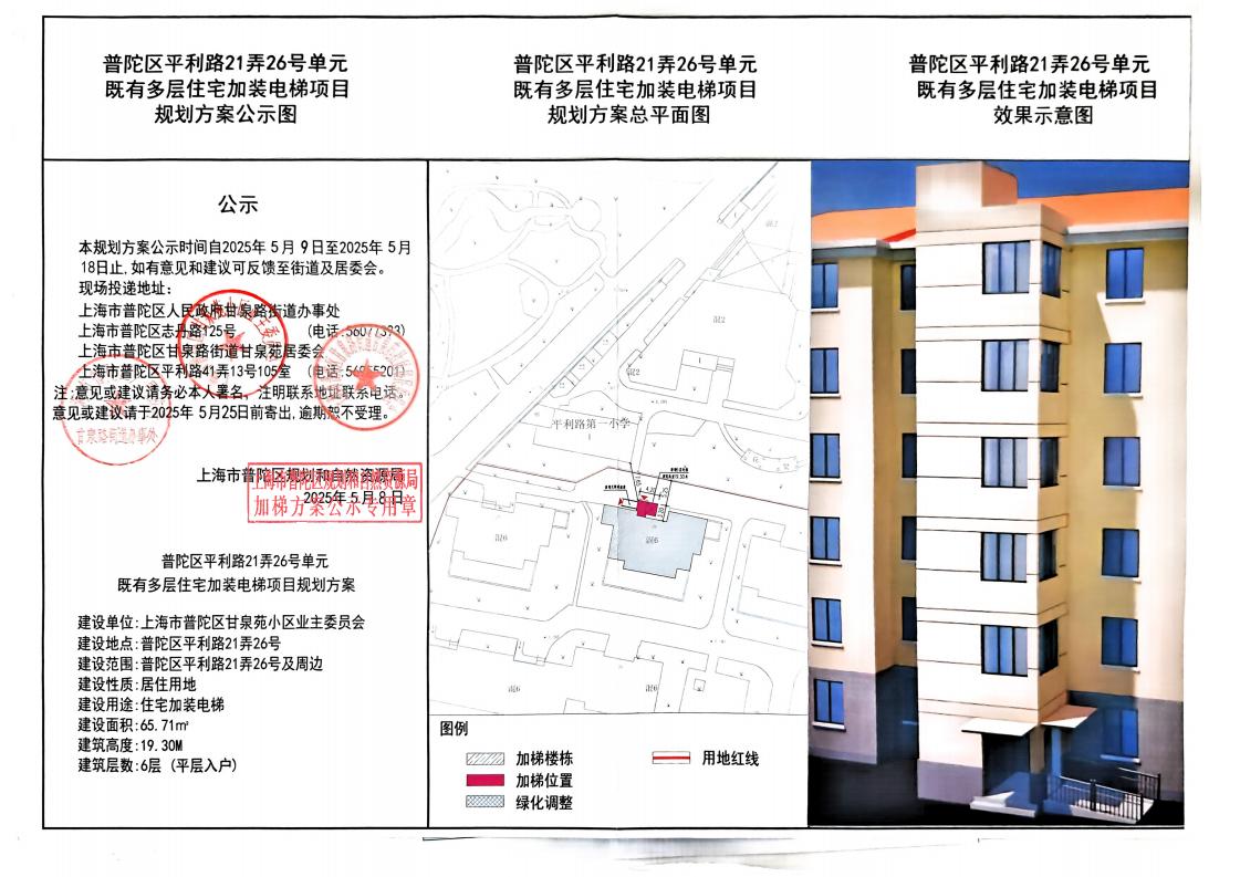 普陀区平利路21弄26号单元既有多层住宅加装电梯项目规划方案公示