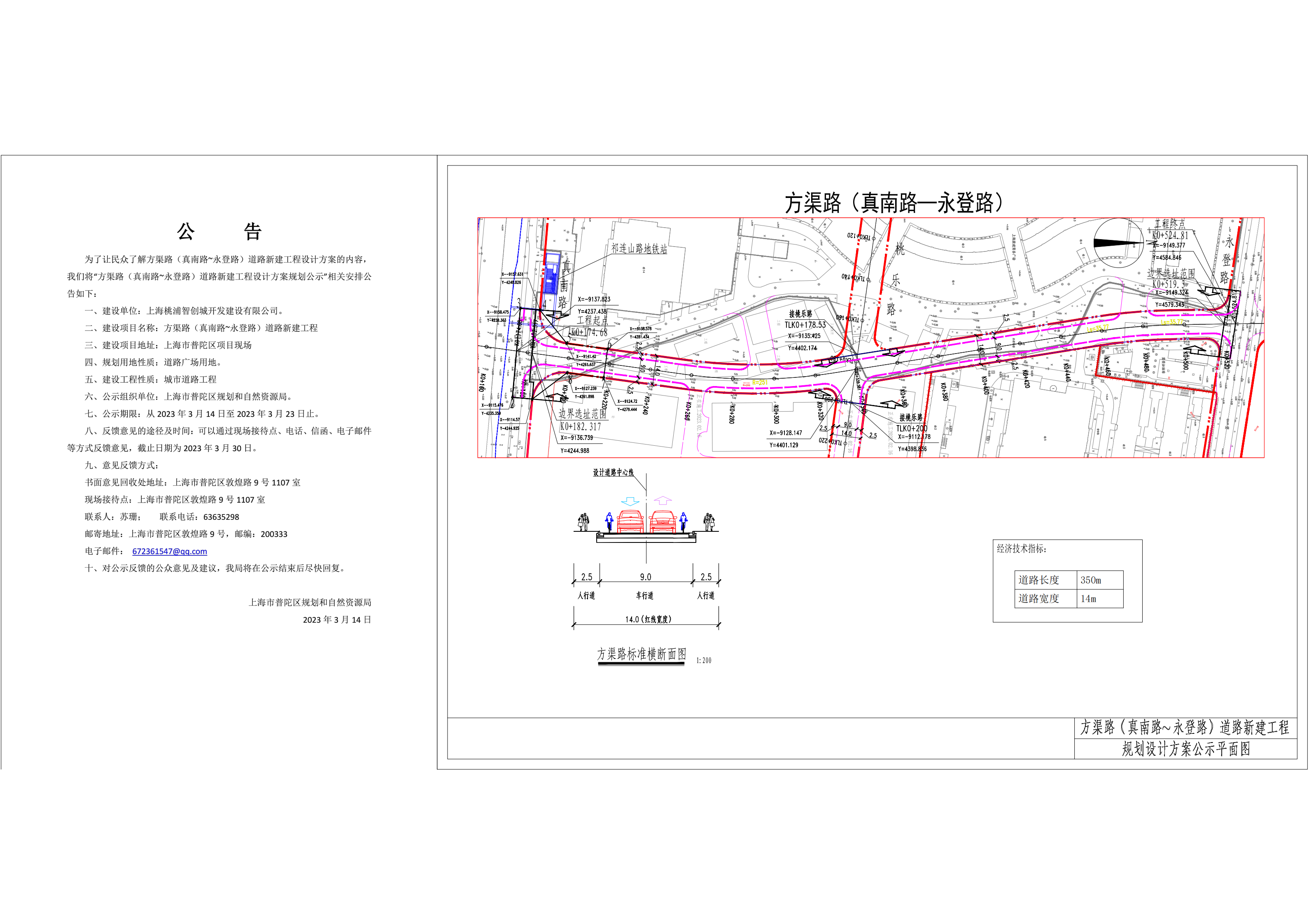 方渠路(真南路~永登路)道路新建工程规划设计方案公示