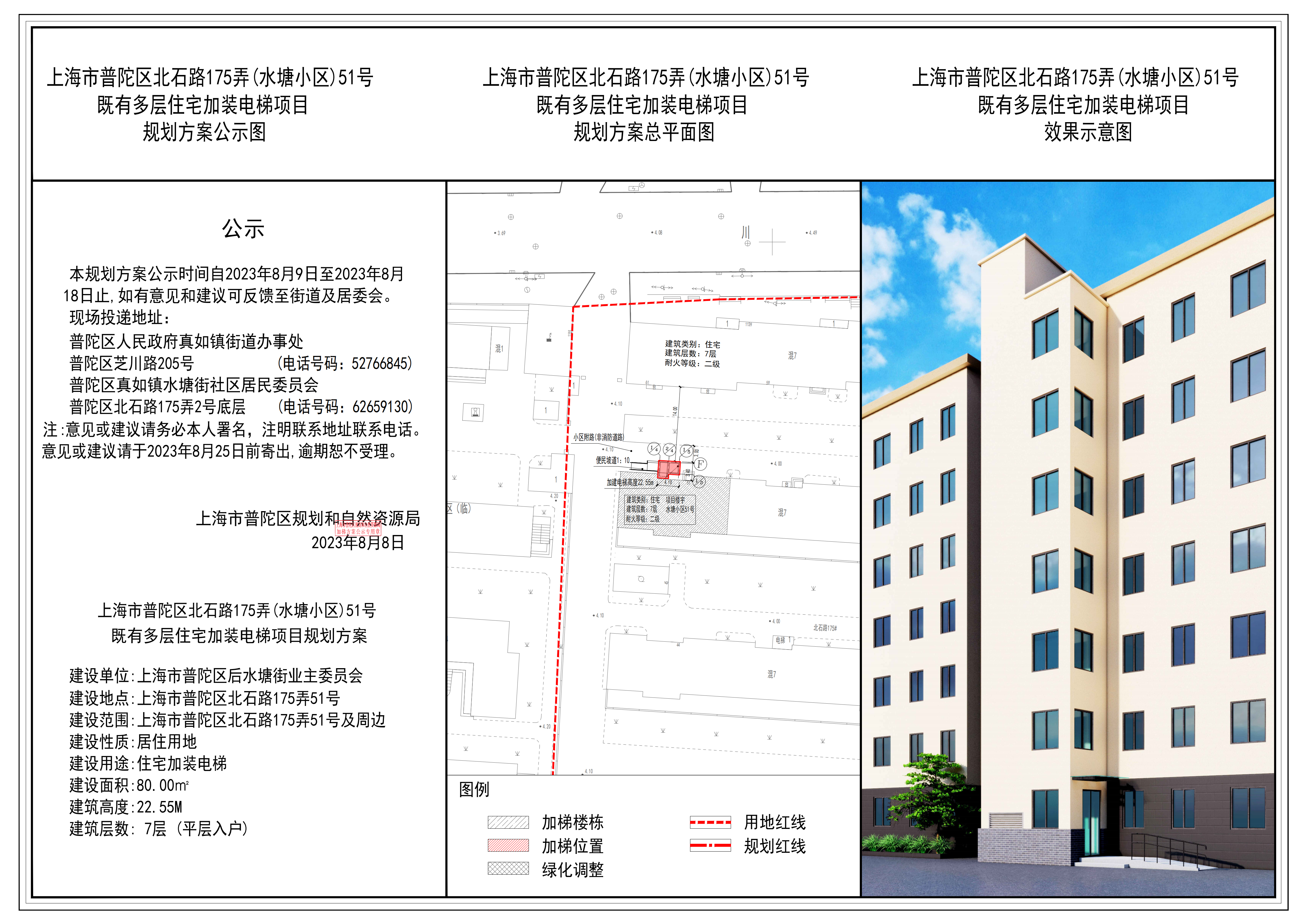 上海市普陀区北石路175弄(水塘小区)51号既有多层住宅加装电梯项目规划方案公示