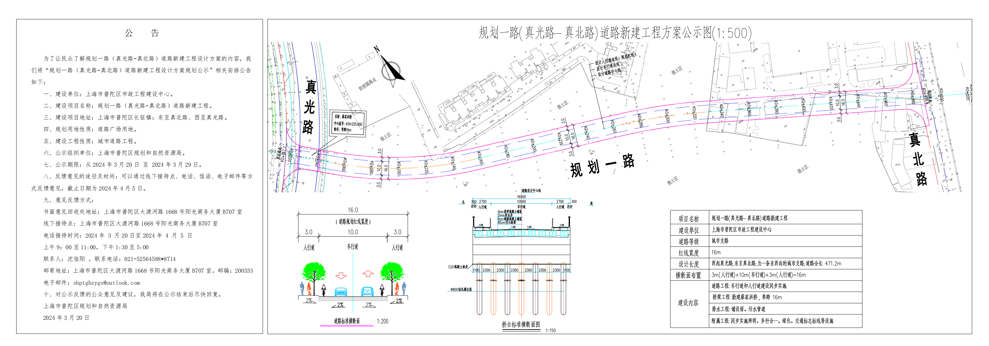 规划一路(真光路-真北路)道路新建工程设计方案规划公示公告