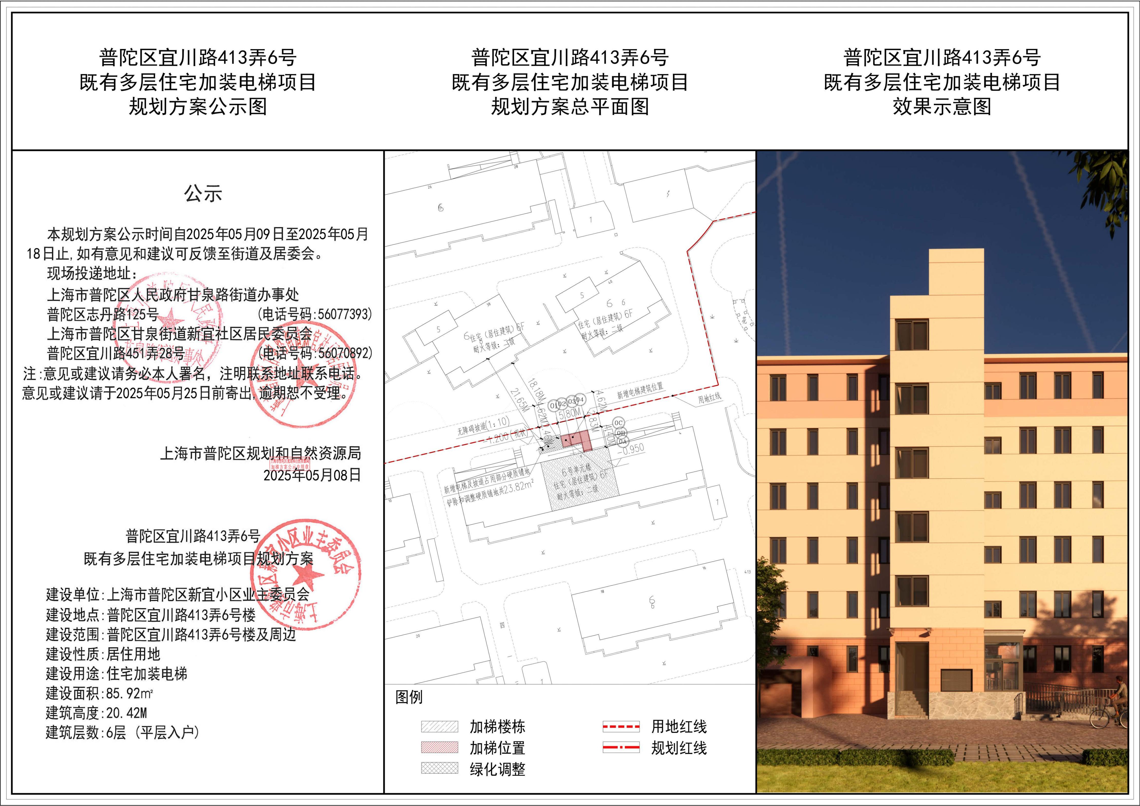 普陀区宜川路413弄6号既有多层住宅加装电梯项目规划方案公示