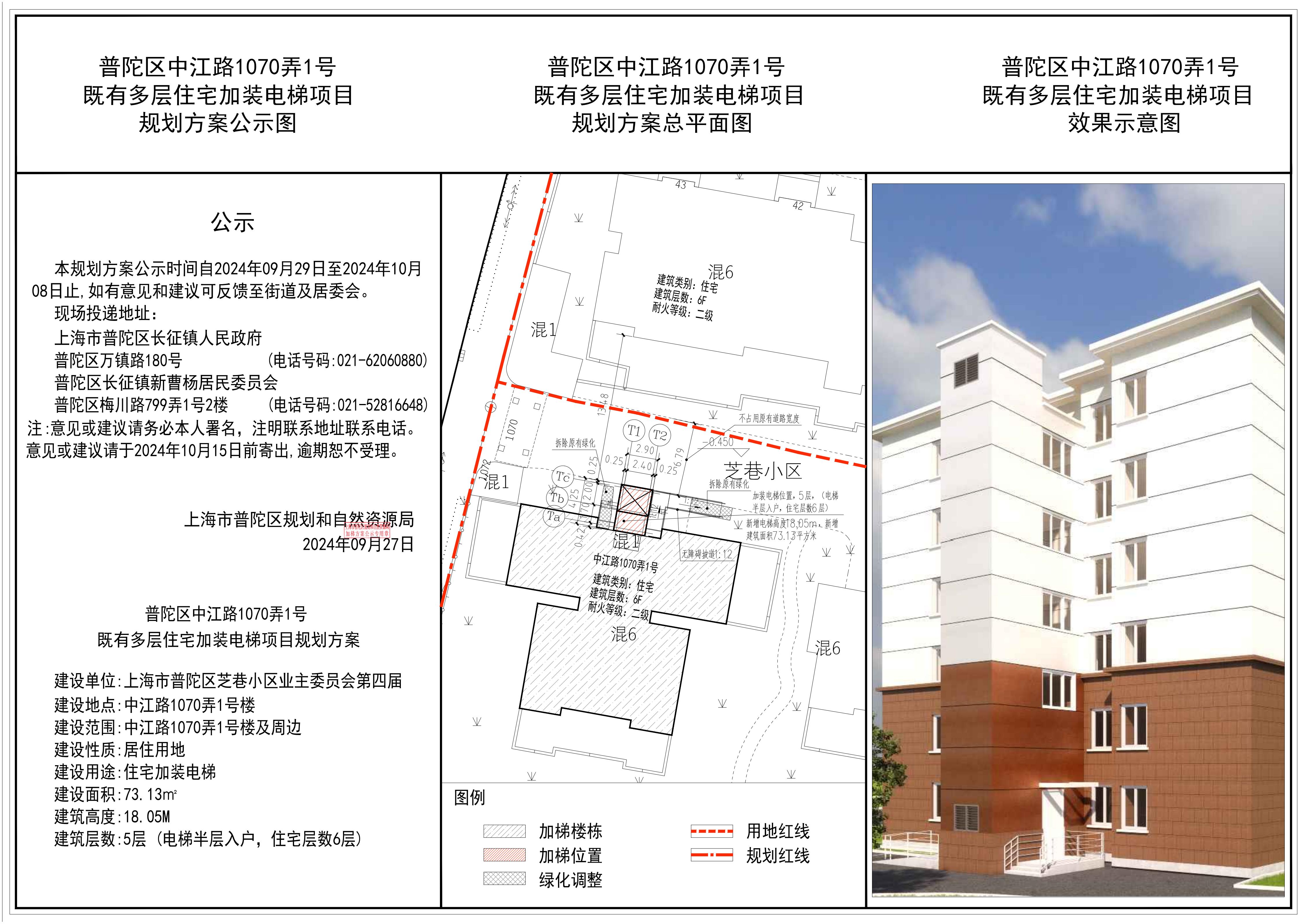 普陀区中江路1070弄1号既有多层住宅加装电梯项目规划方案公示