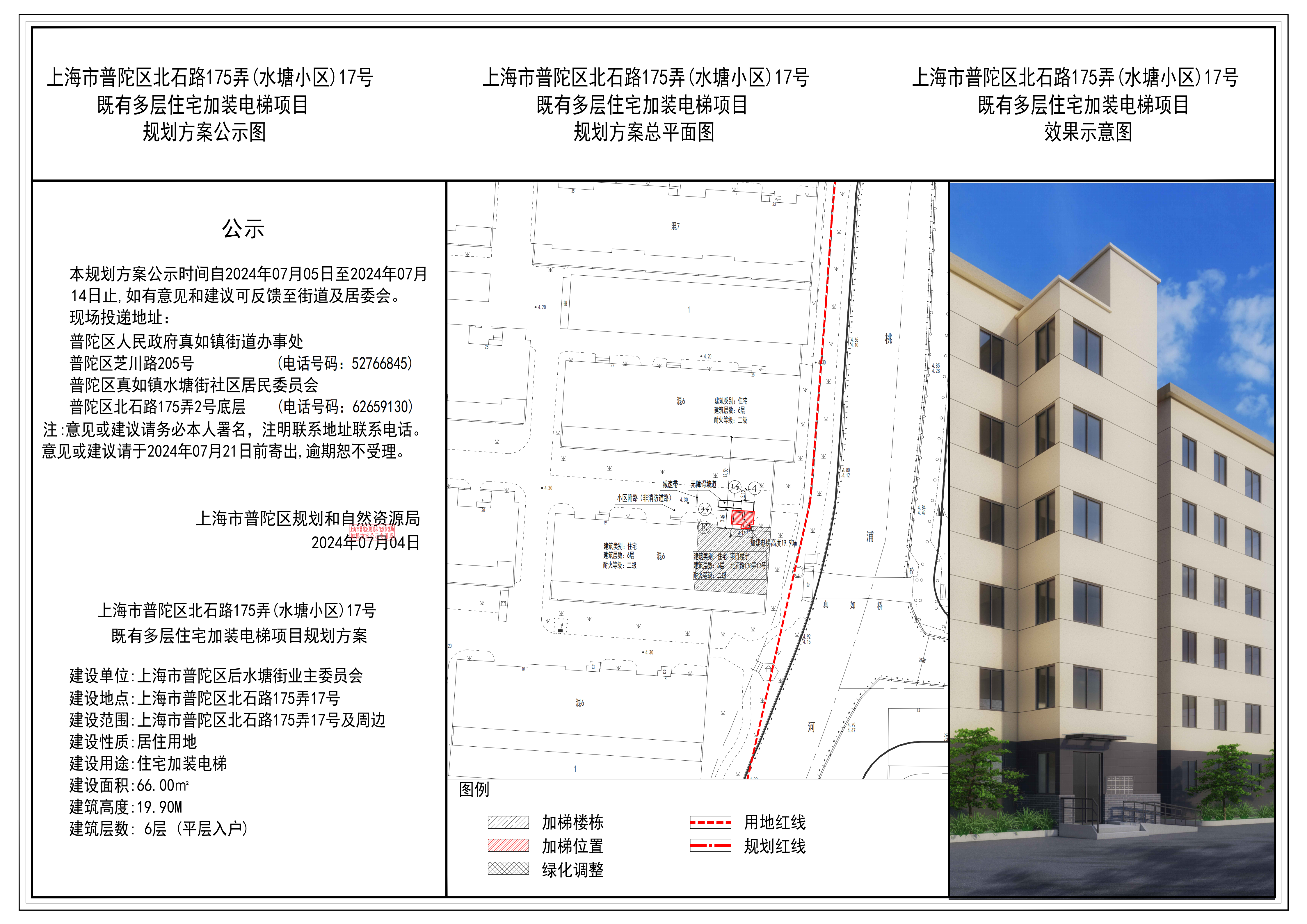 上海市普陀区北石路175弄(水塘小区)17号既有多层住宅加装电梯项目规划方案公示
