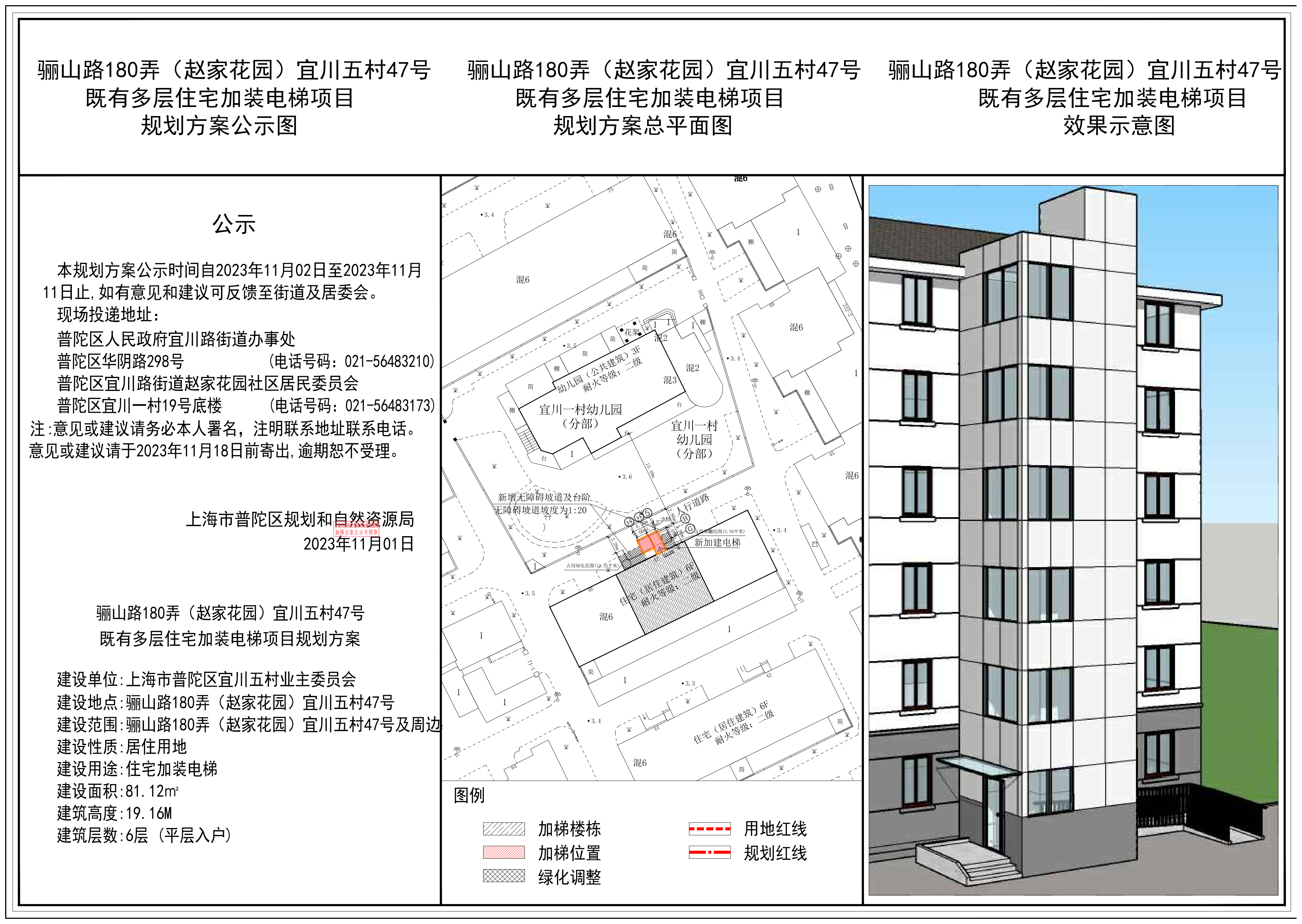 骊山路180弄(赵家花园)宜川五村47号既有多层住宅加装电梯项目规划方案公示