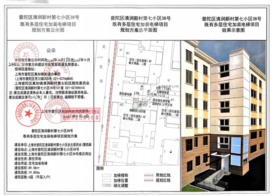 普陀区清涧新村第七小区38号既有多层住宅加装电梯项目规划方案公示