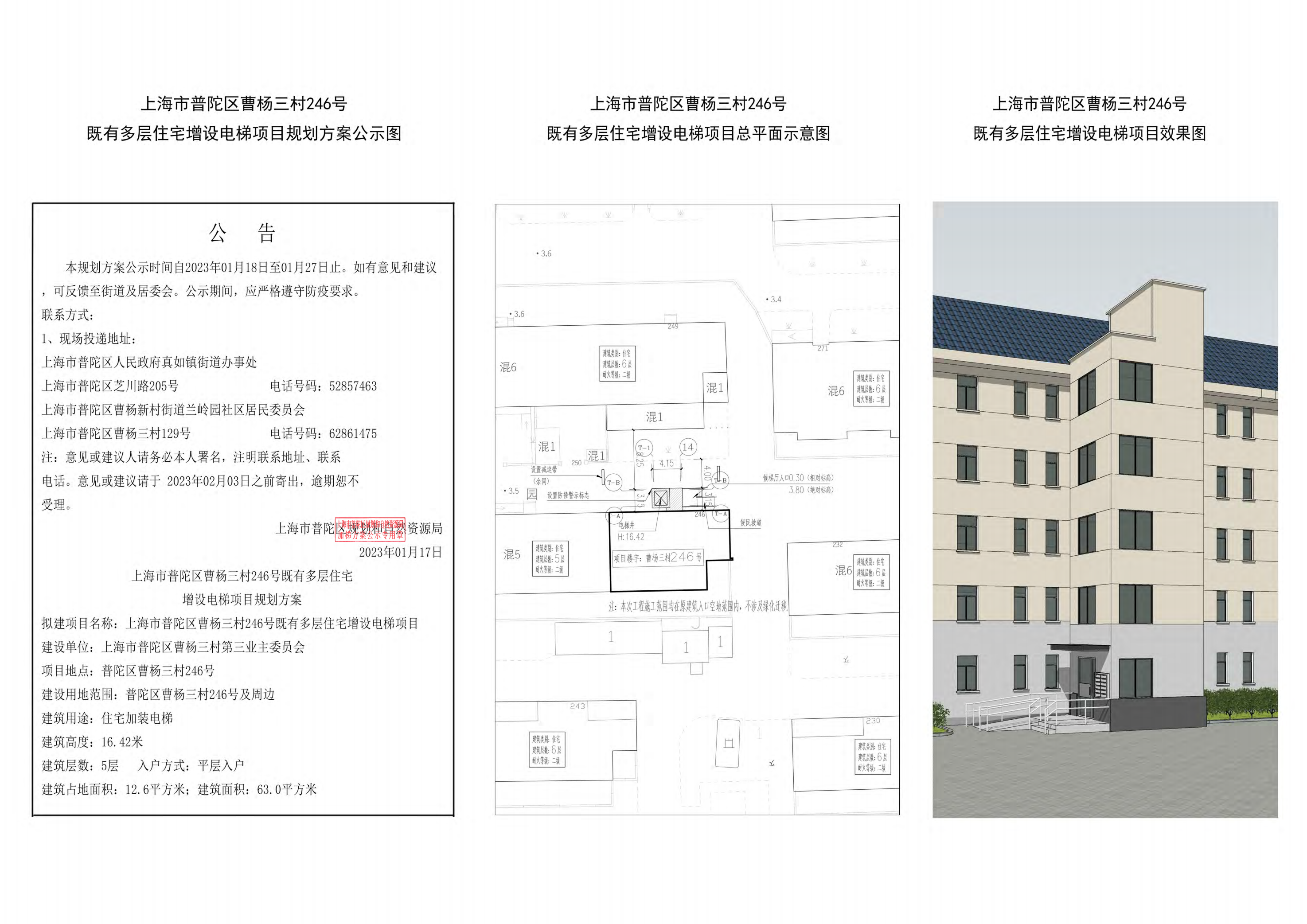 上海市普陀区曹杨三村246号既有多层住宅增设电梯项目规划方案公示