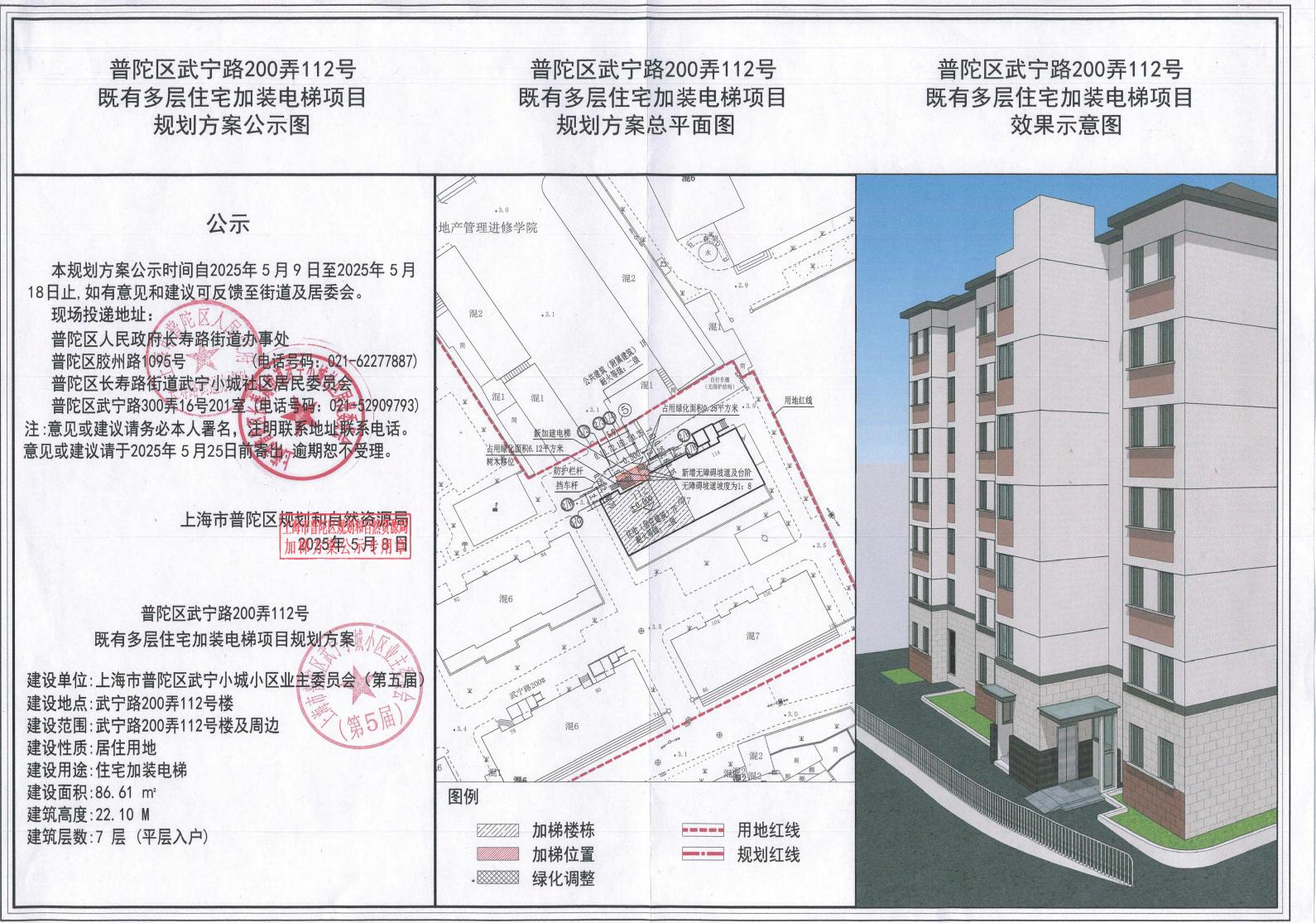 普陀区武宁路200弄112号既有多层住宅加装电梯项目规划方案公示
