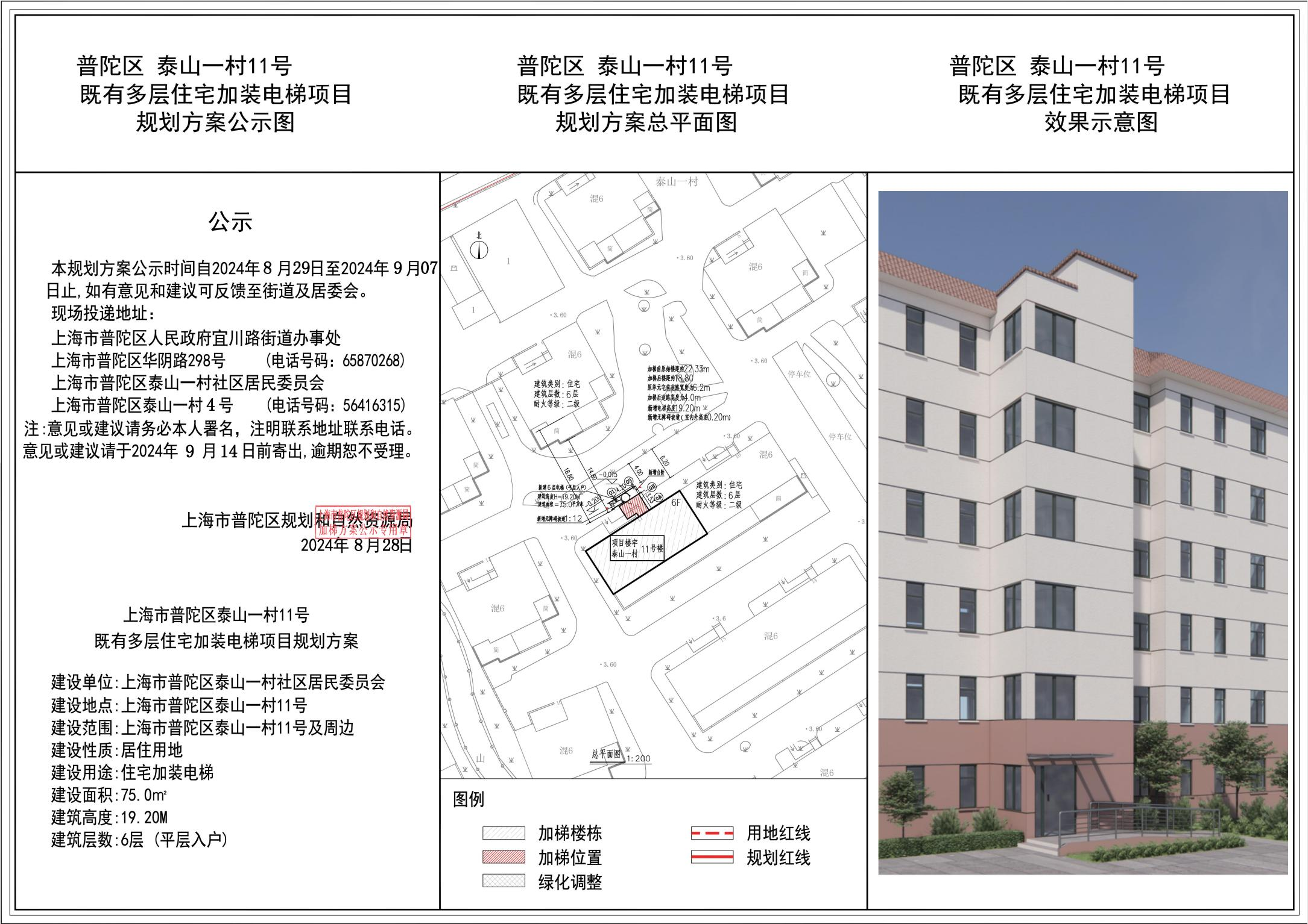 普陀区泰山一村11号既有多层住宅加装电梯项目规划方案公示