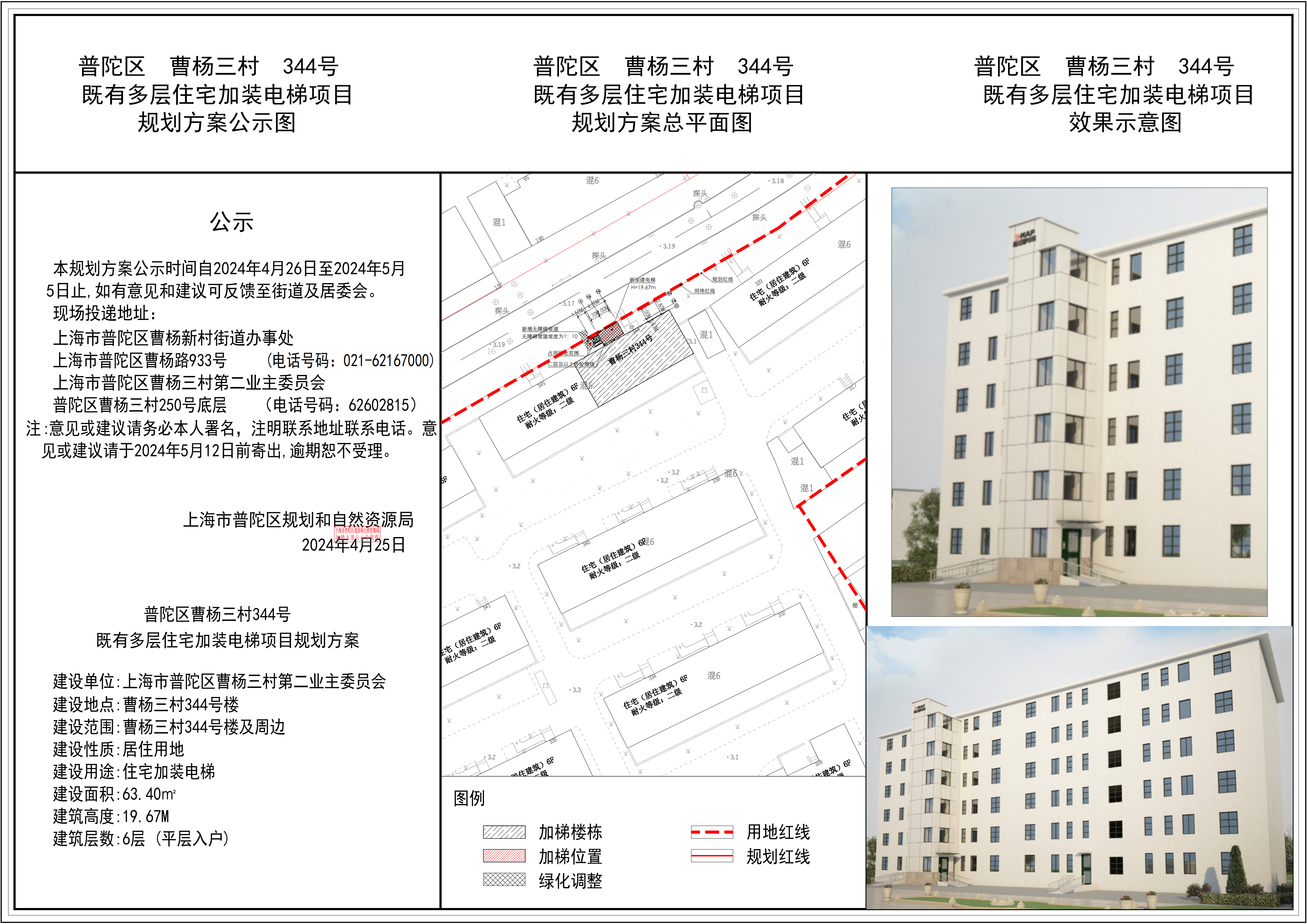 普陀区曹杨三村344号既有多层住宅加装电梯项目规划方案公示
