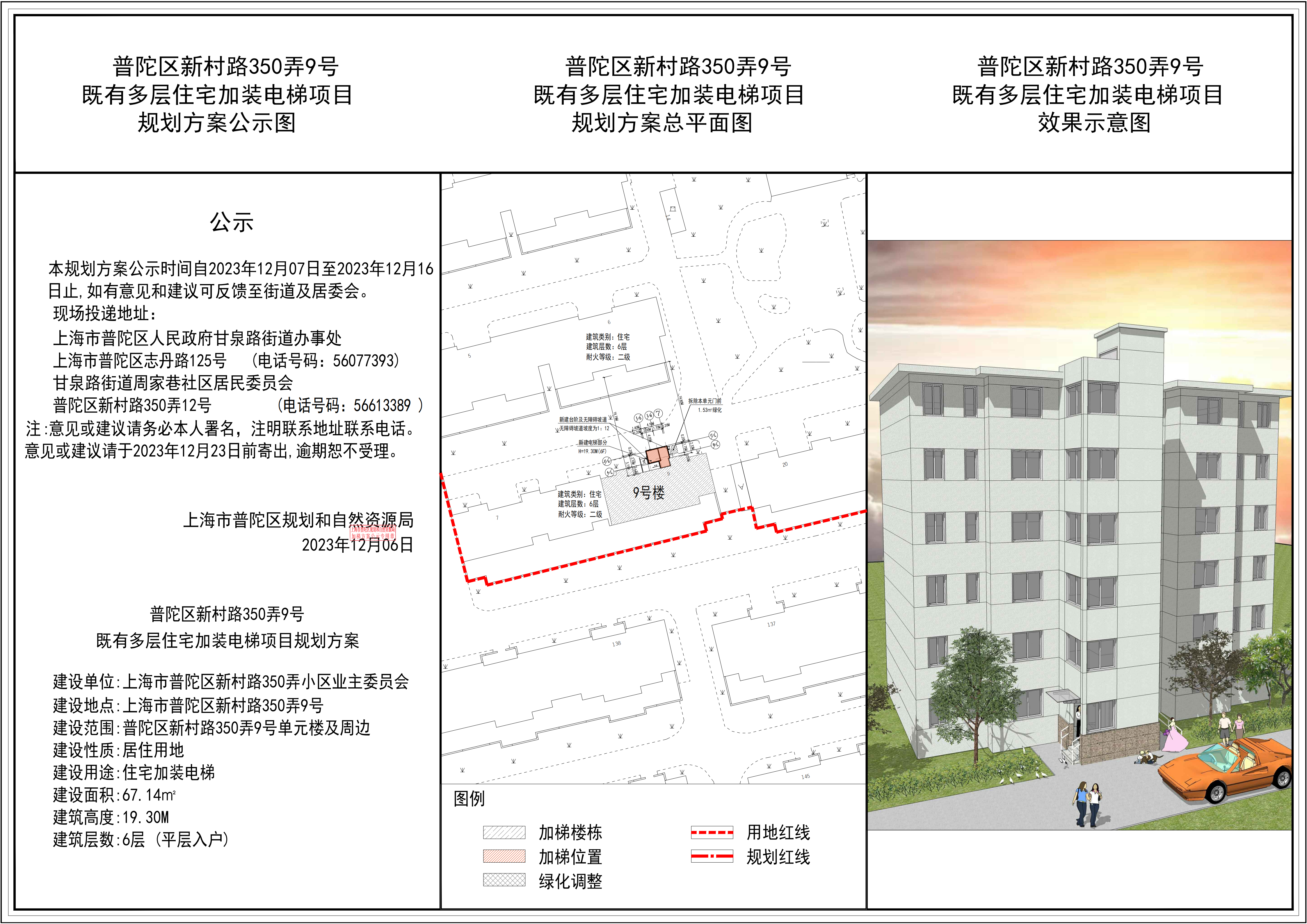 普陀区新村路350弄9号既有多层住宅加装电梯项目规划方案公示