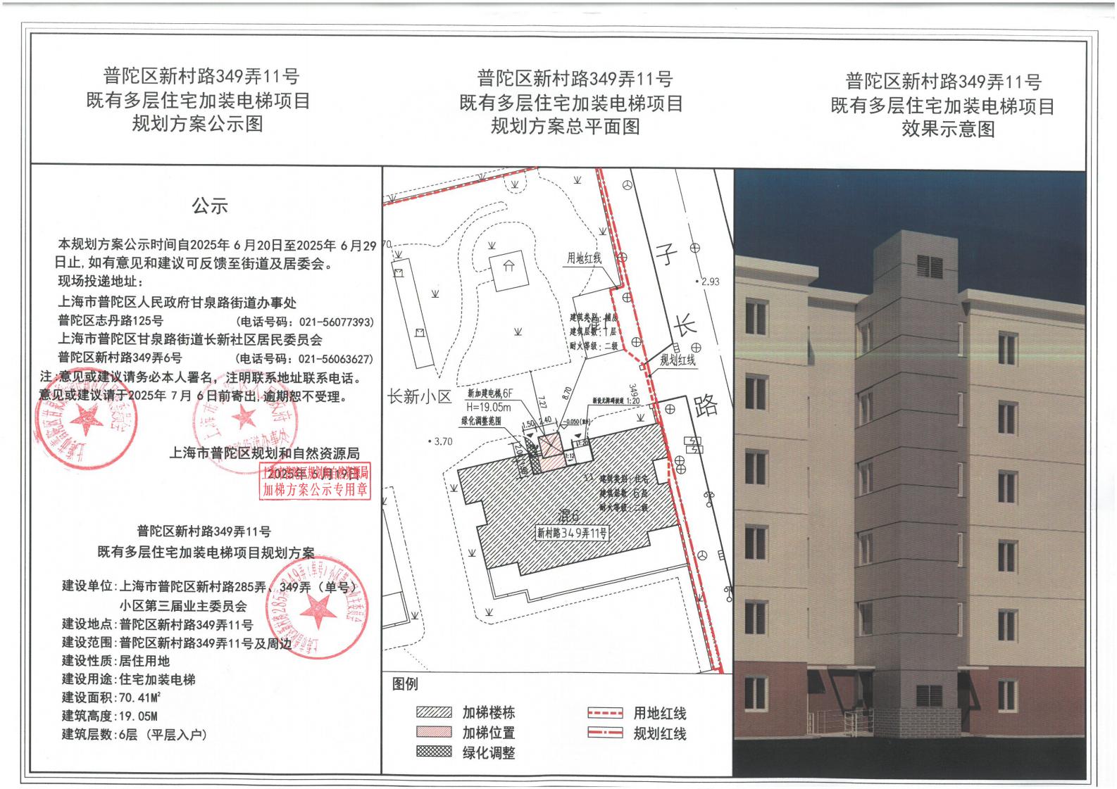 普陀区新村路349弄11号既有多层住宅加装电梯项目规划方案公示