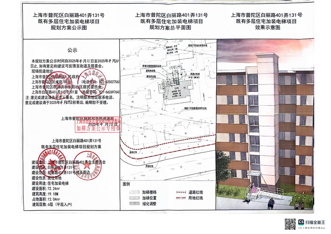 上海市普陀区白丽路401弄131号既有多层住宅加装电梯项目规划方案公示