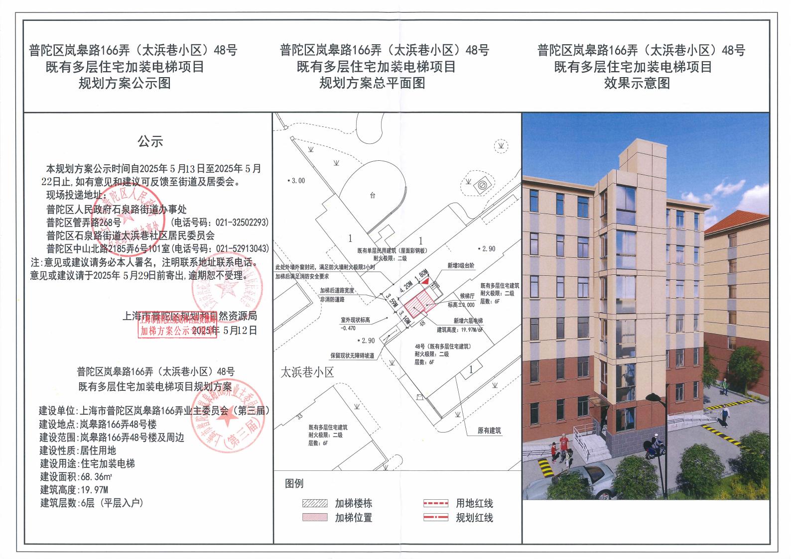 普陀区岚皋路166弄(太浜巷小区)48号既有多层住宅加装电梯项目规划方案公示