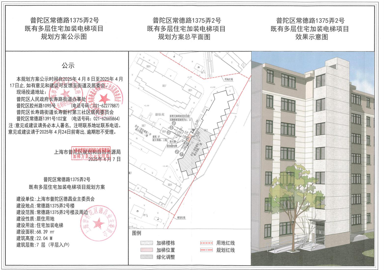 普陀区常德路1375弄2号既有多层住宅加装电梯项目规划方案公示