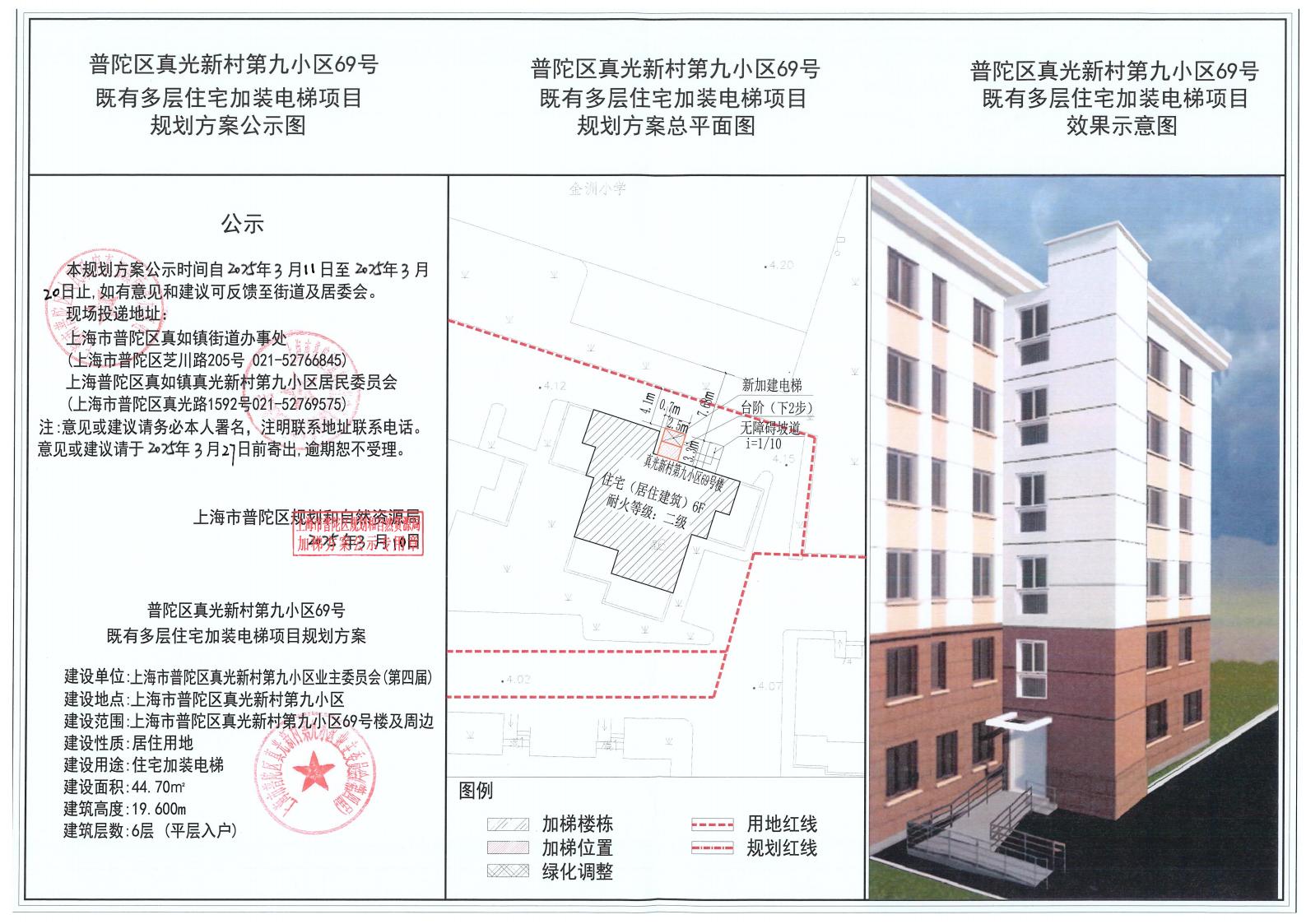 普陀区真光新村第九小区69号既有多层住宅加装电梯项目规划方案公示