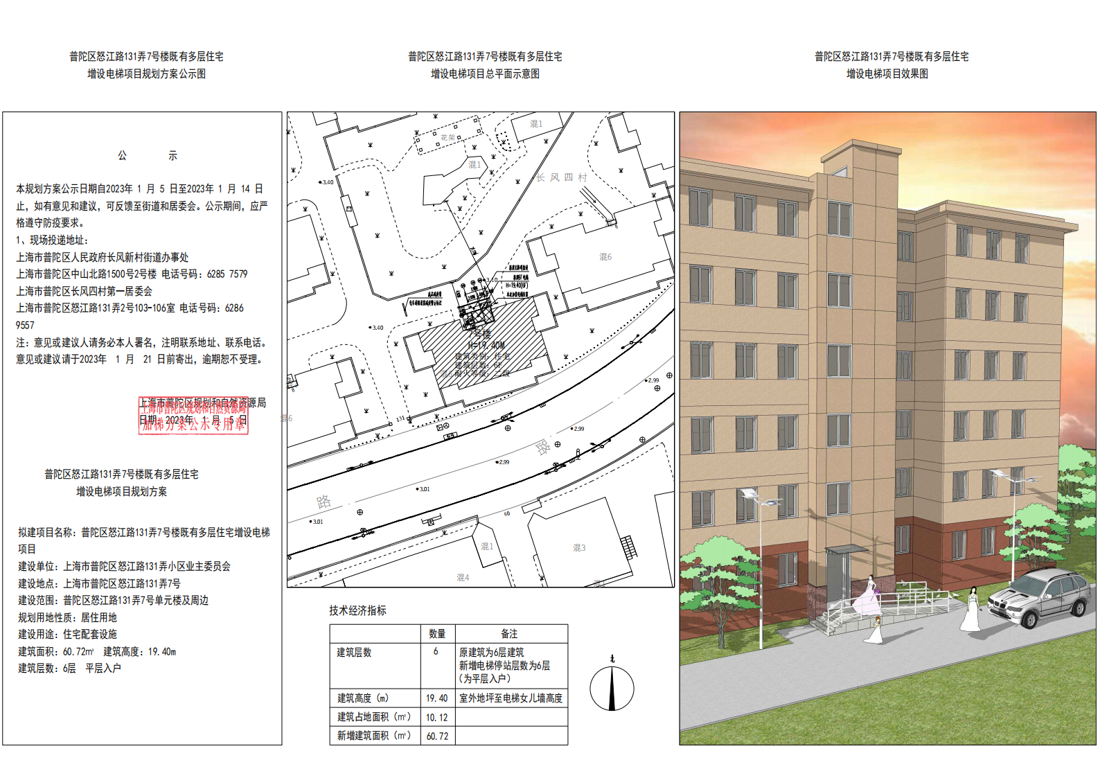 普陀区怒江路131弄7号楼既有多层住宅增设电梯项目规划方案公示