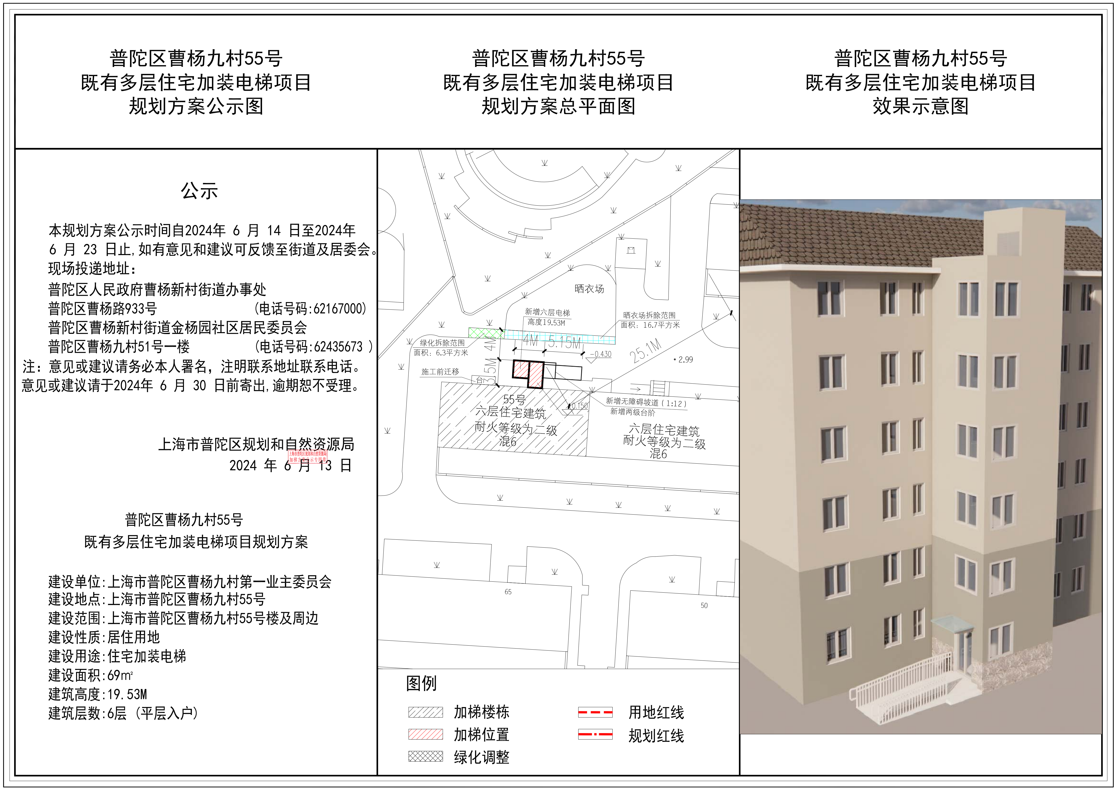 普陀区曹杨九村55号既有多层住宅加装电梯项目规划方案公示
