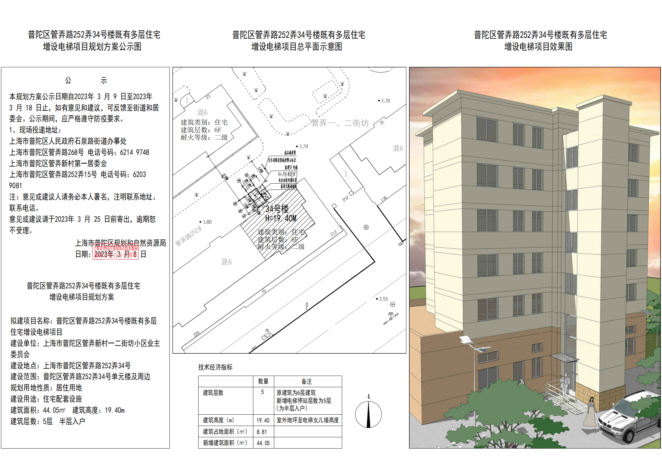 普陀区管弄路252弄34号楼既有多层住宅增设电梯项目规划方案公示