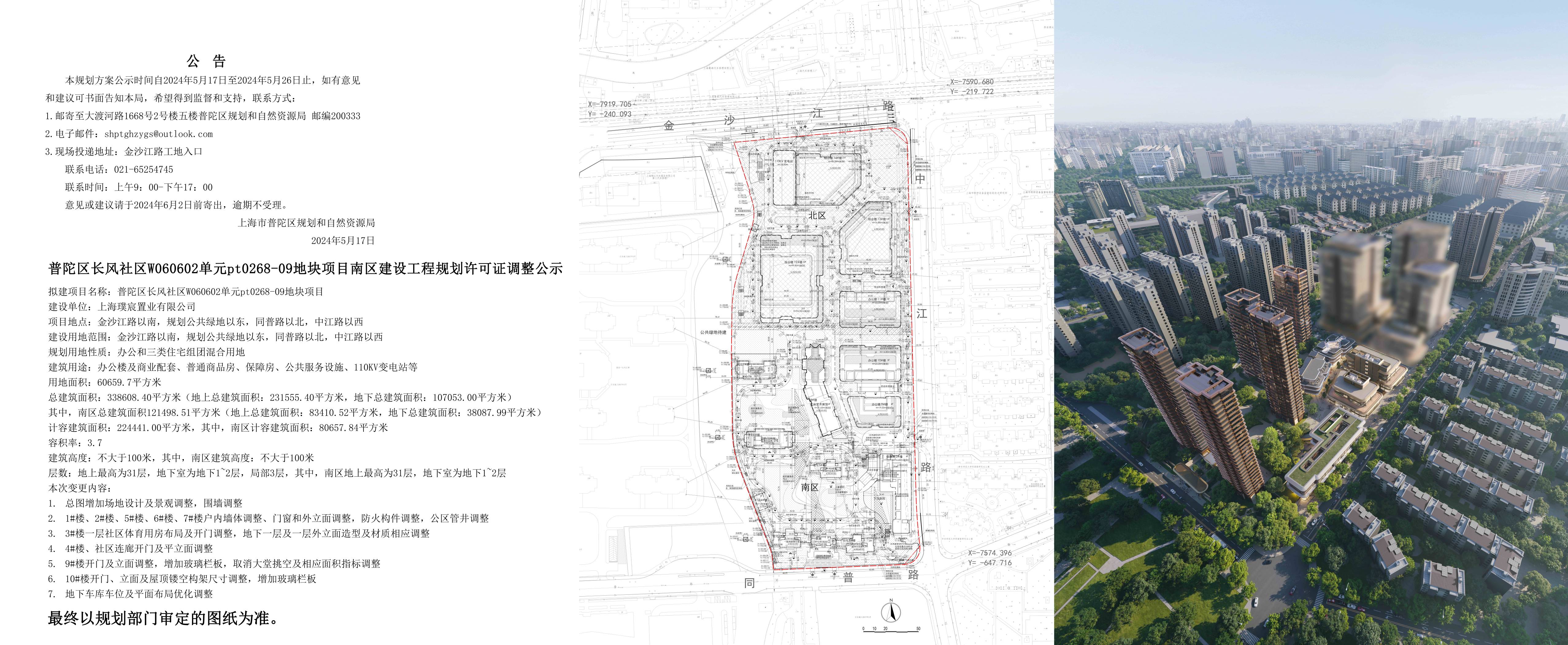 普陀区长风社区W060602单元pt0268-09地块项目南区建设工程规划许可证调整公示