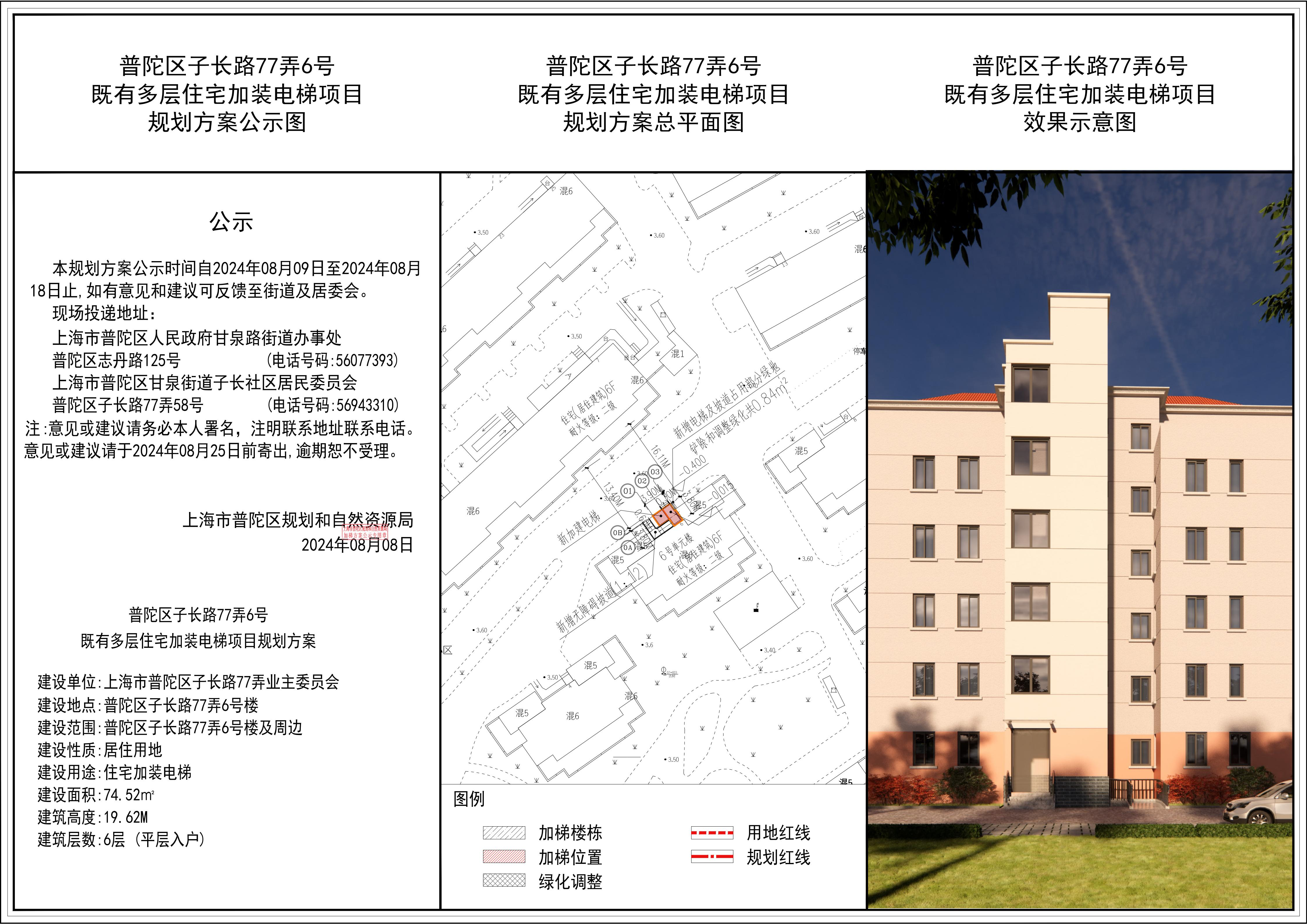 普陀区子长路77弄6号既有多层住宅加装电梯项目规划方案公示
