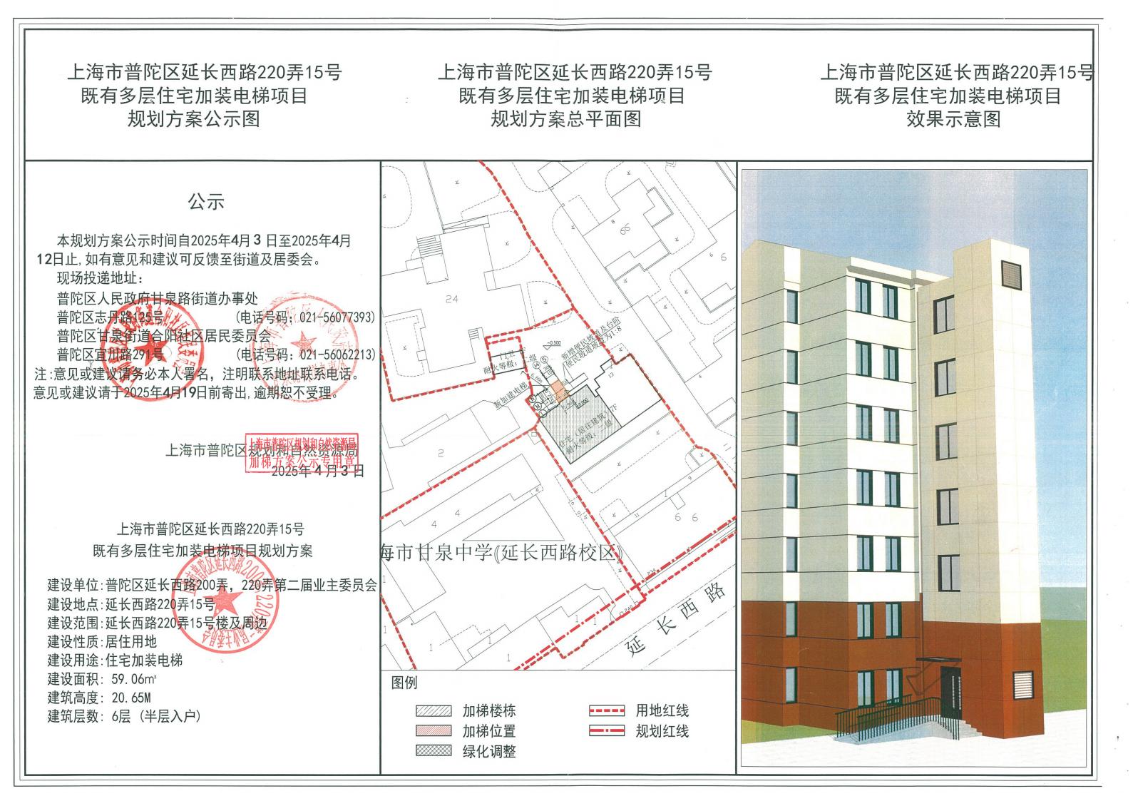 上海市普陀区延长西路220弄15号既有多层住宅加装电梯项目规划方案公示