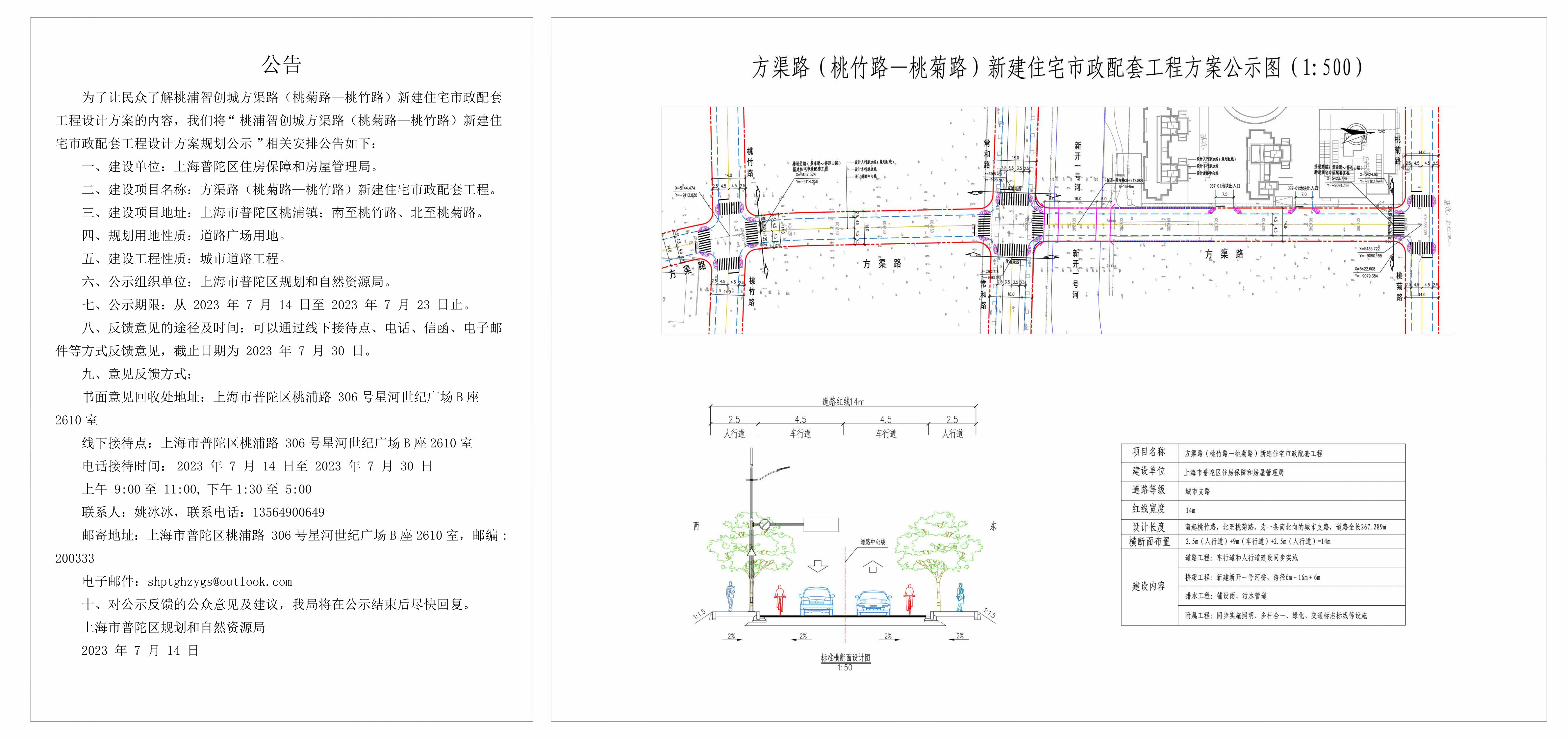 方渠路(桃竹路-桃菊路)新建住宅市政配套工程方案公示