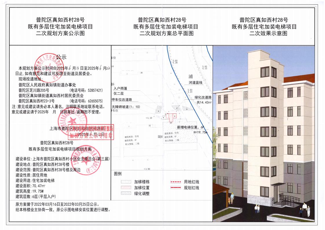 普陀区真如西村28号既有多层住宅加装电梯项目二次规划方案公示