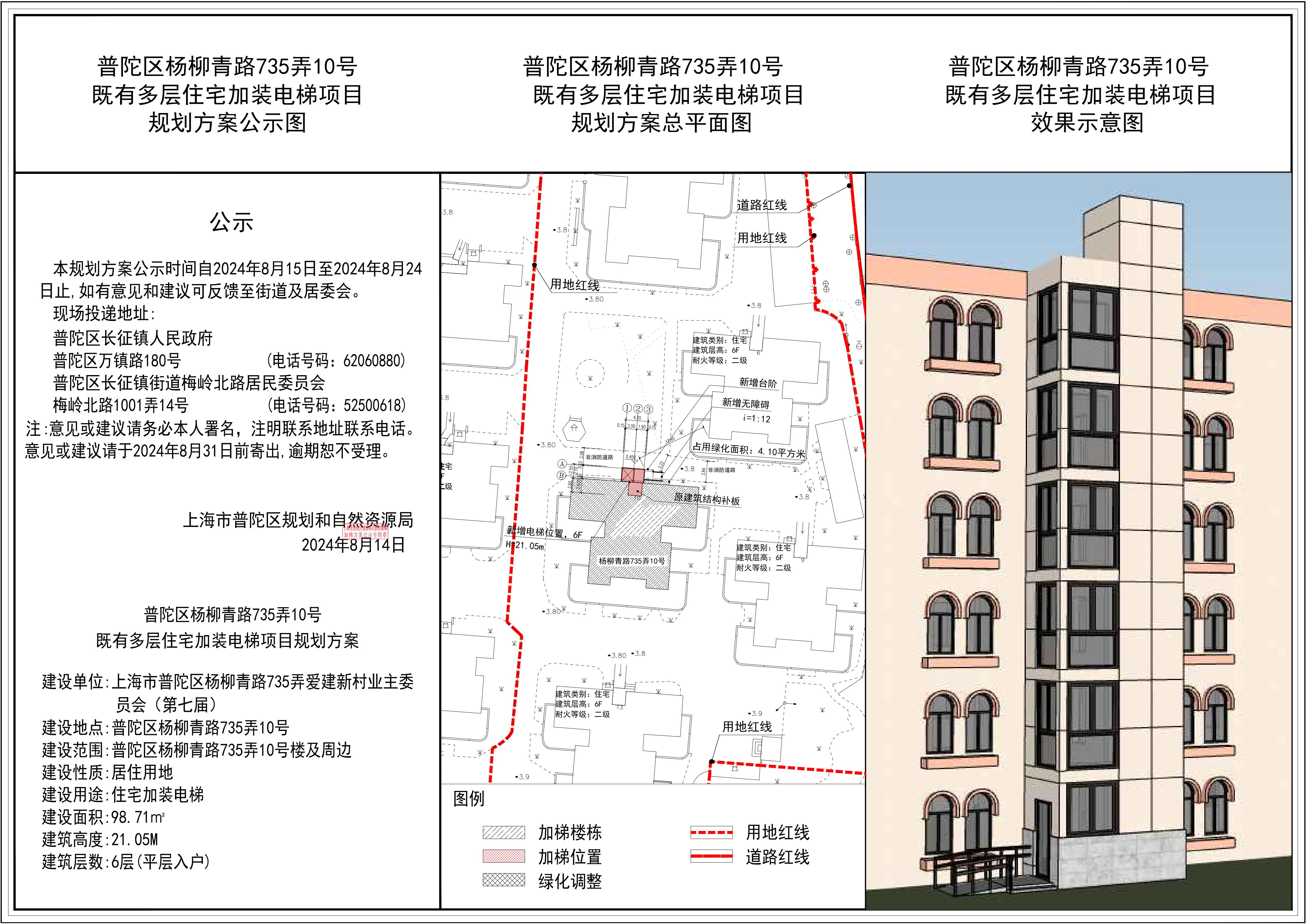 普陀区杨柳青路735弄10号既有多层住宅加装电梯项目规划方案公示