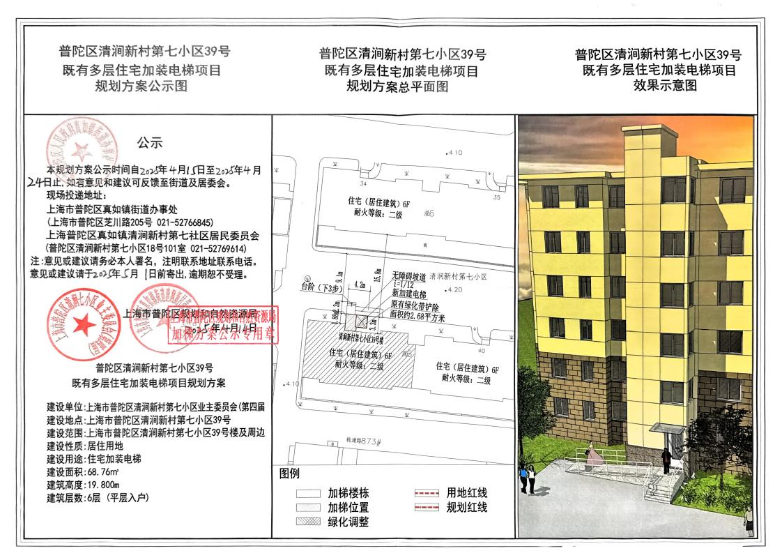 普陀区清涧新村第七小区39号既有多层住宅加装电梯项目规划方案公示
