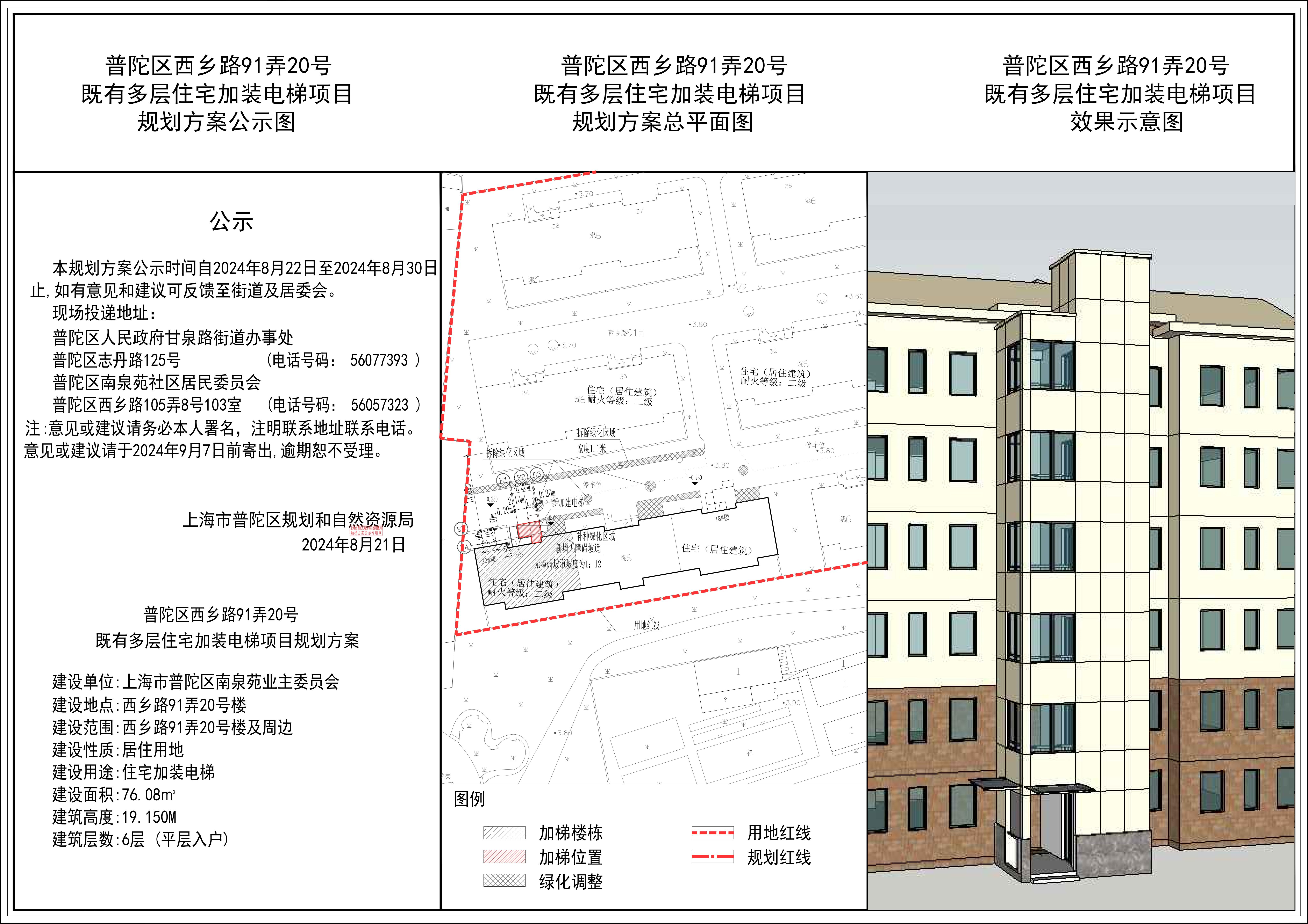 普陀区西乡路91弄20号既有多层住宅加装电梯项目规划方案公示