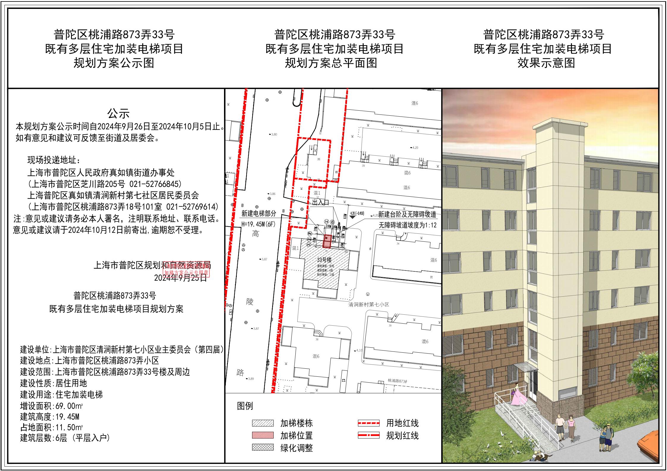普陀区桃浦路873弄33号既有多层住宅加装电梯项目规划方案公示