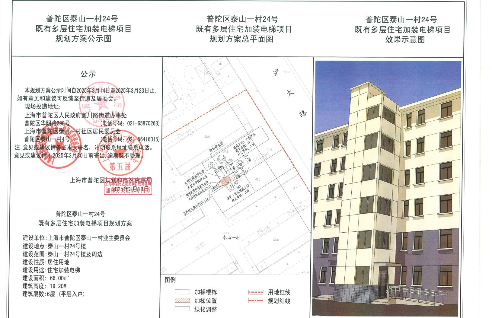 普陀区泰山一村24号既有多层住宅加装电梯项目规划方案公示