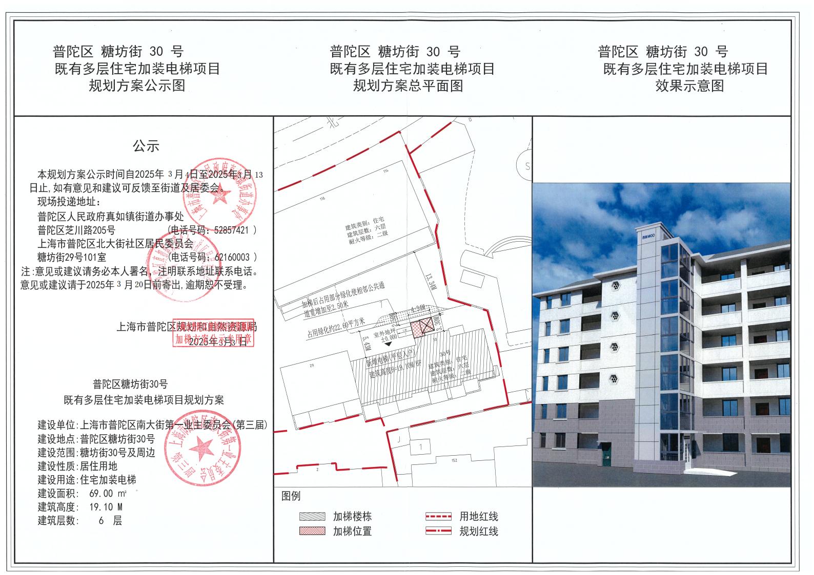 普陀区糖坊街30号既有多层住宅加装电梯项目规划方案公示