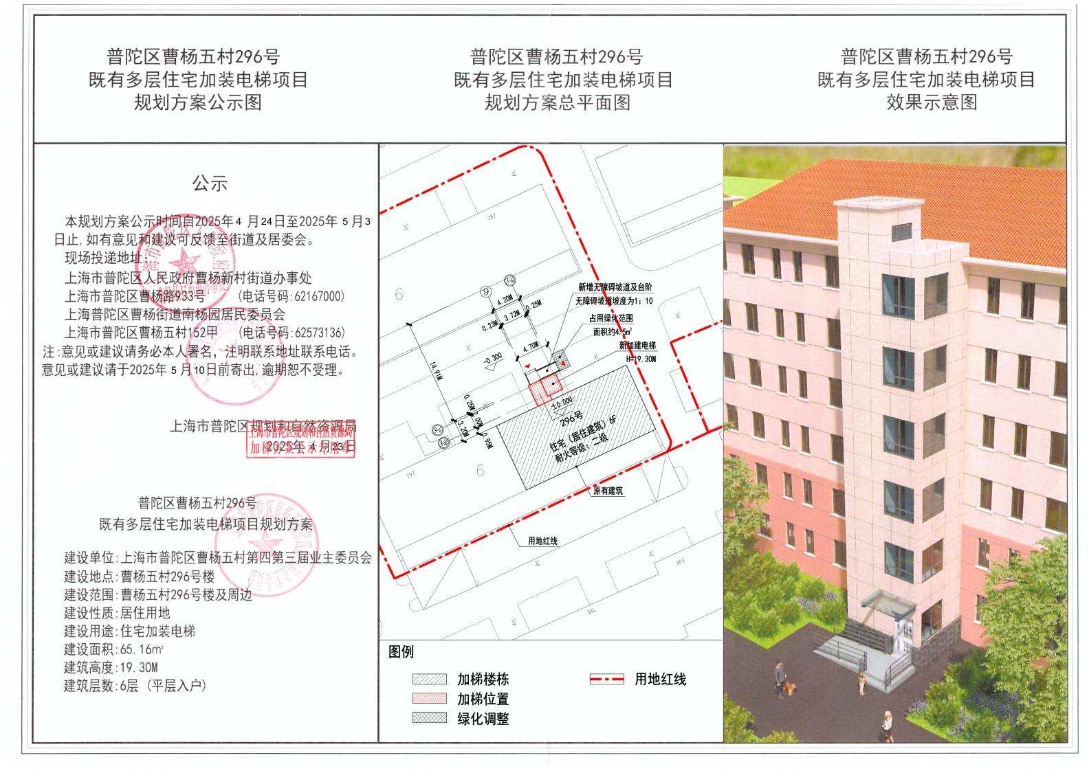 普陀区曹杨五村296号既有多层住宅加装电梯项目规划方案公示