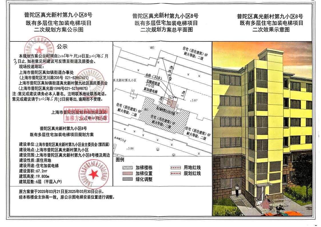 普陀区真光新村第九小区8号既有多层住宅加装电梯项目二次规划方案公示