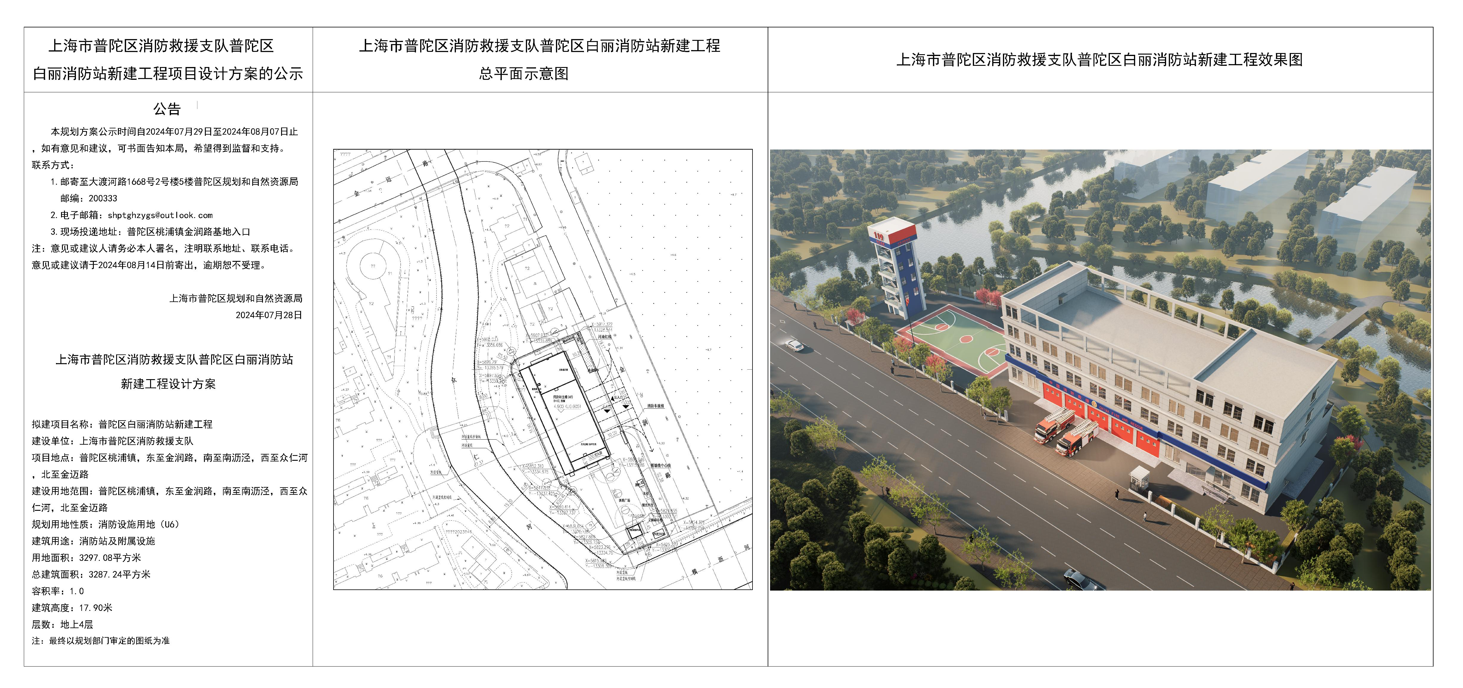 上海市普陀区消防救援支队普陀区白丽消防站新建工程项目设计方案的公示公告