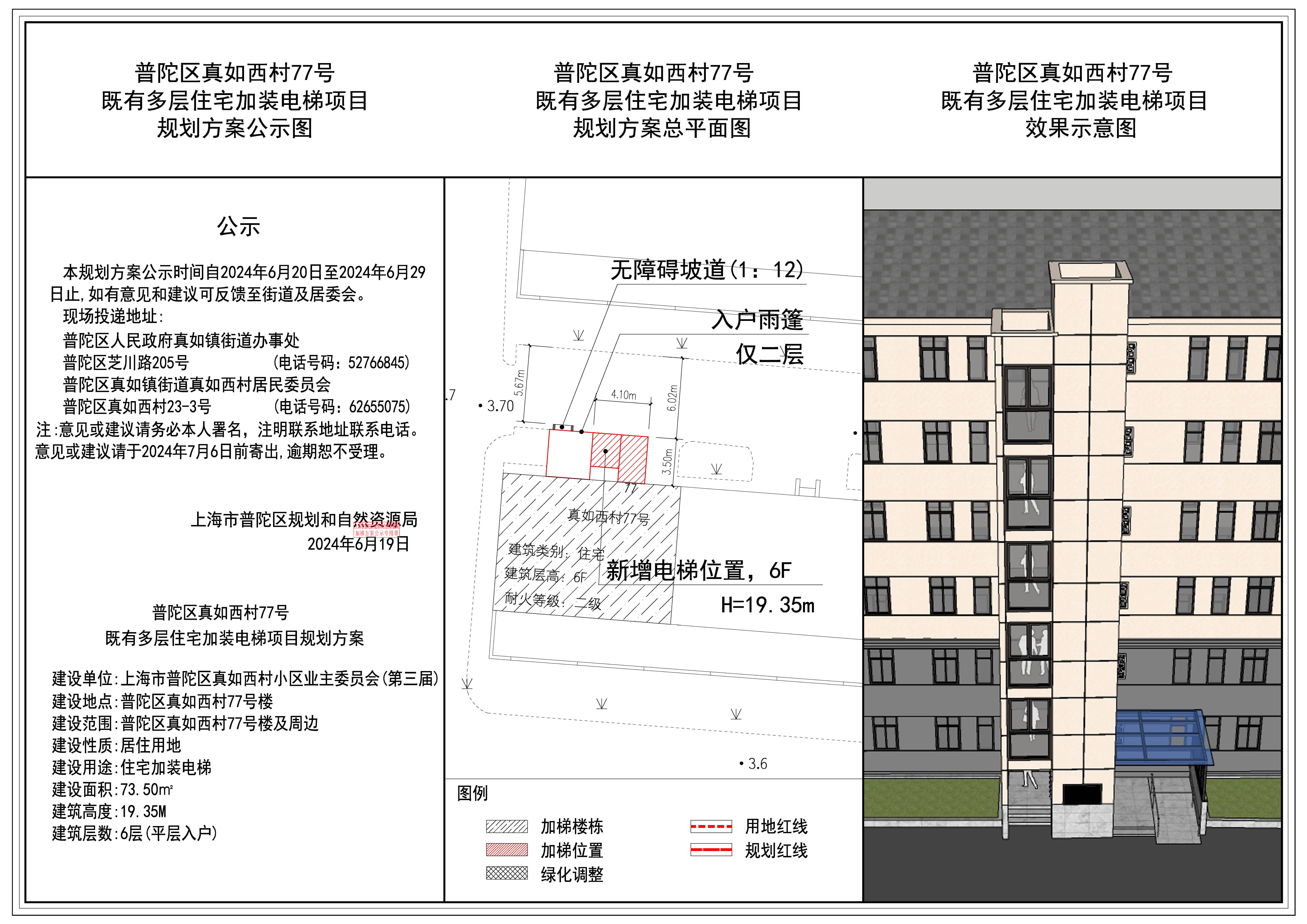 普陀区真如西村77号既有多层住宅加装电梯项目规划方案公示