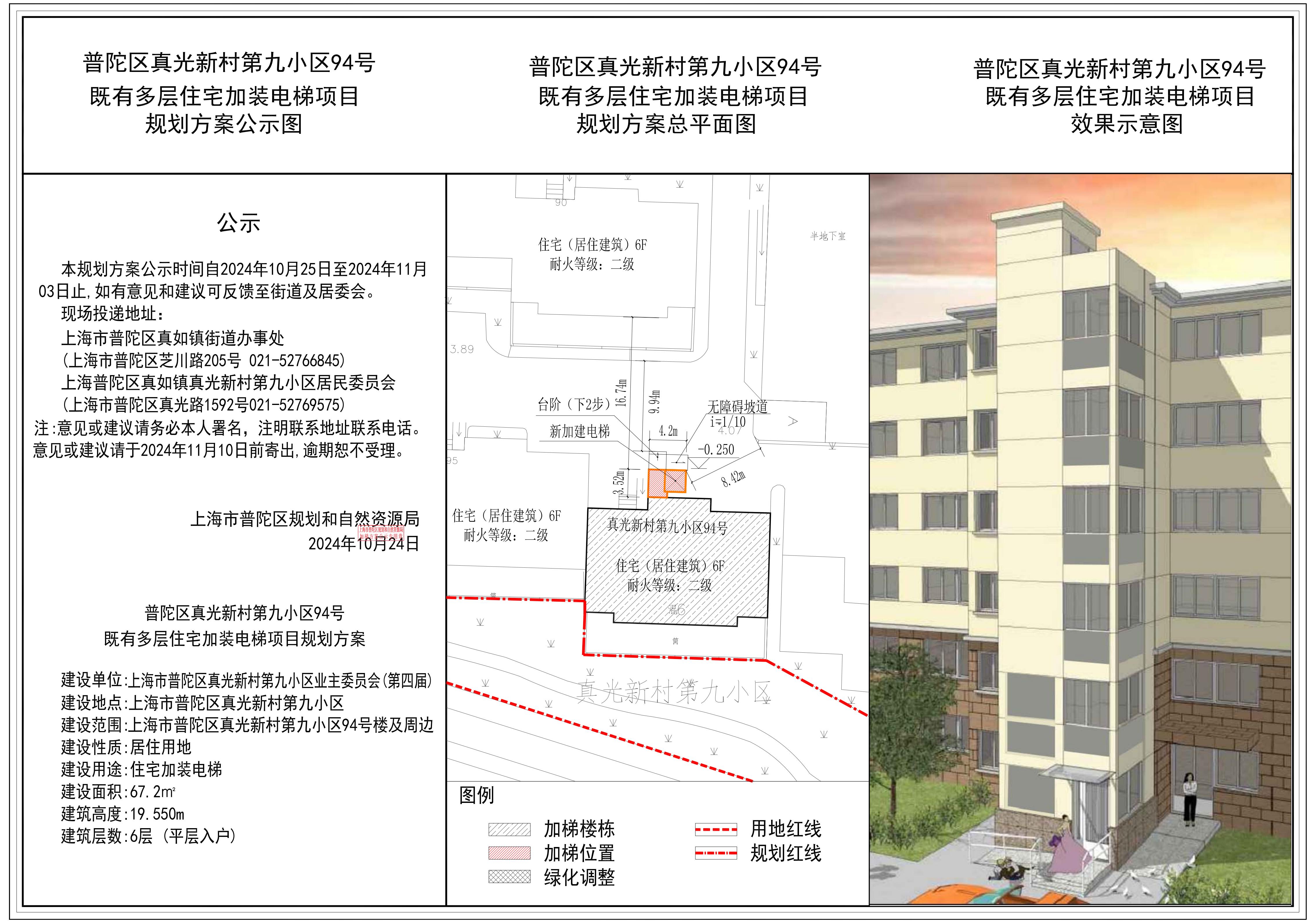 普陀区真光新村第九小区94号既有多层住宅加装电梯项目规划方案公示