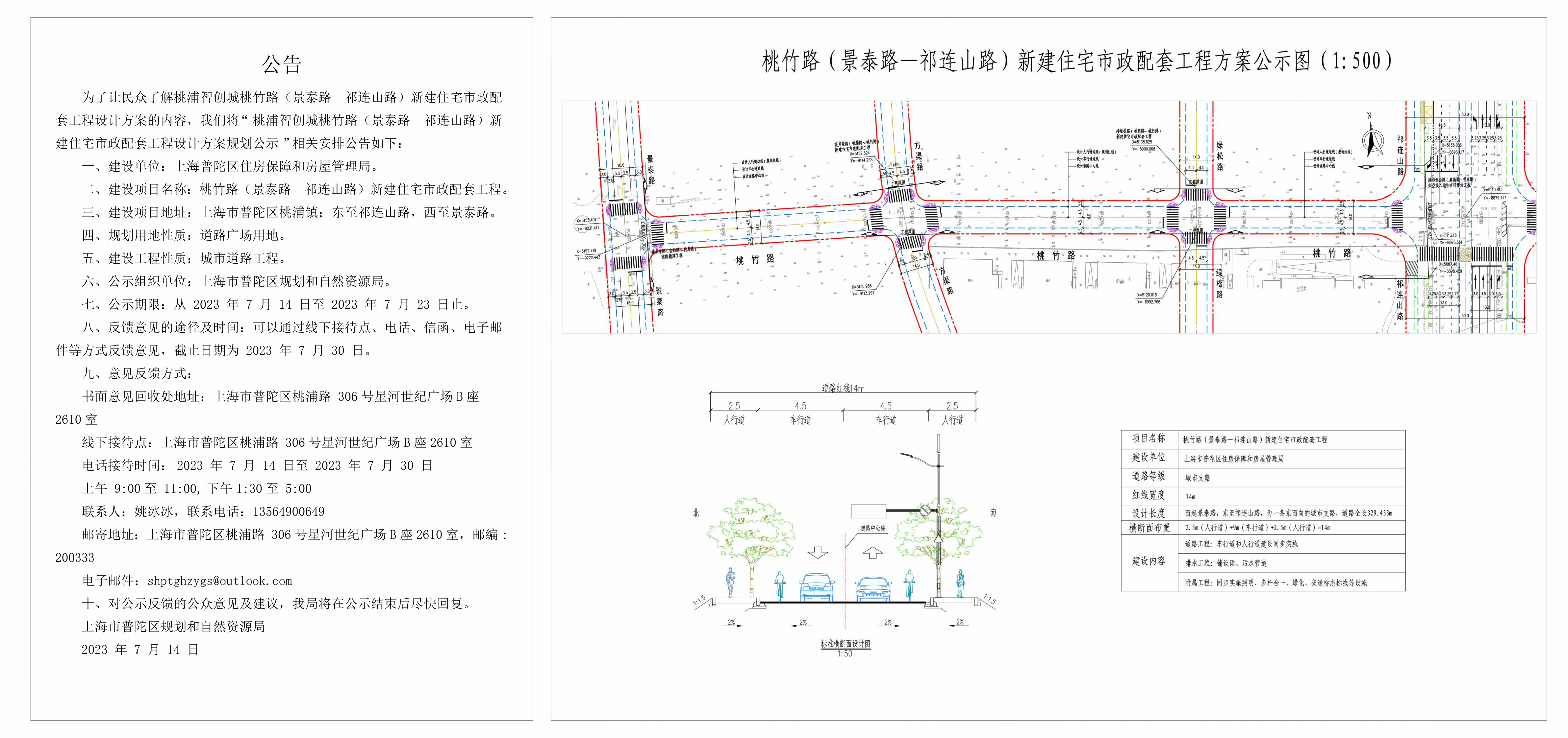 桃竹路(景泰路-祁连山路)新建住宅市政配套工程方案公示