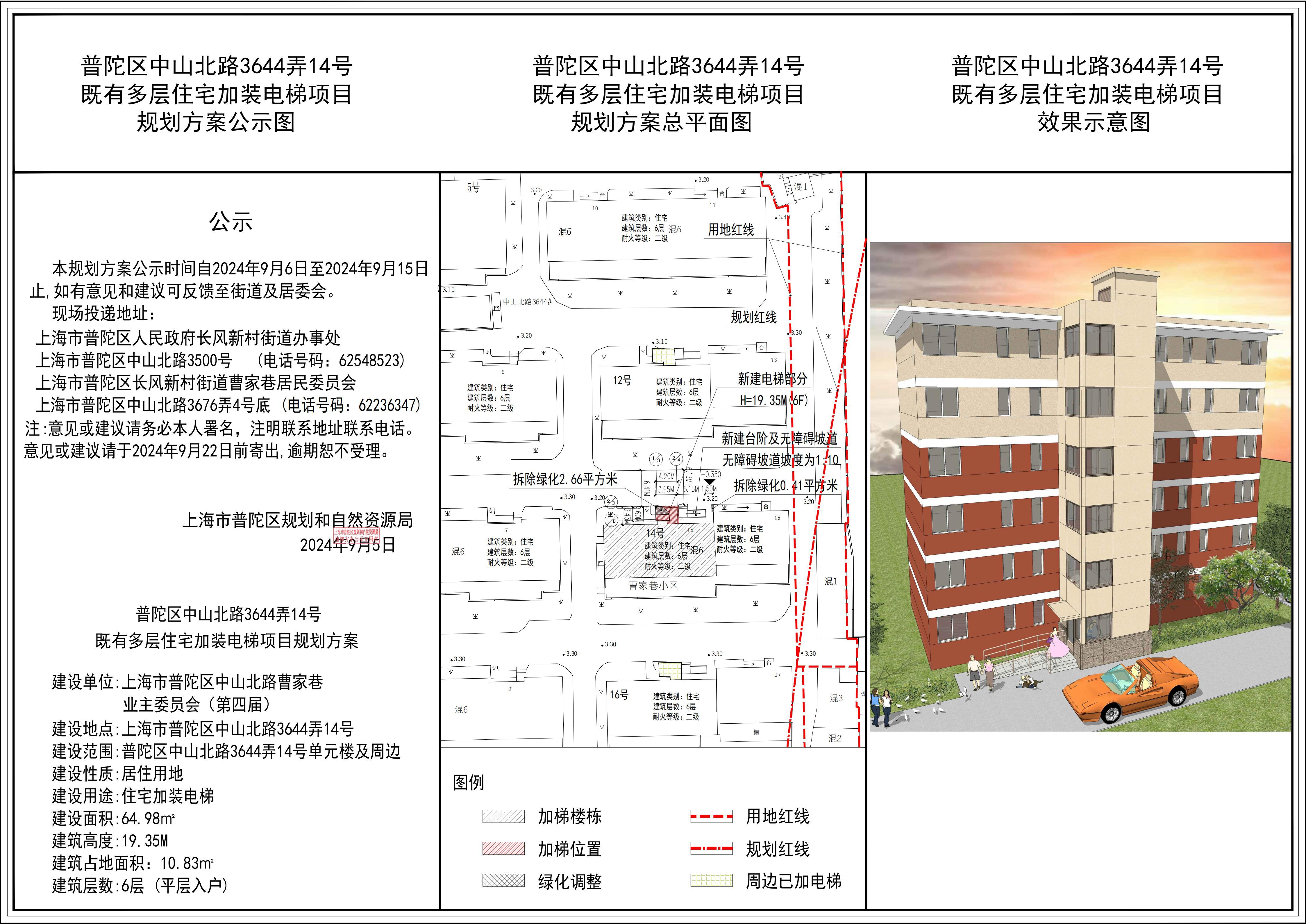 普陀区中山北路3644弄14号既有多层住宅加装电梯项目规划方案公示