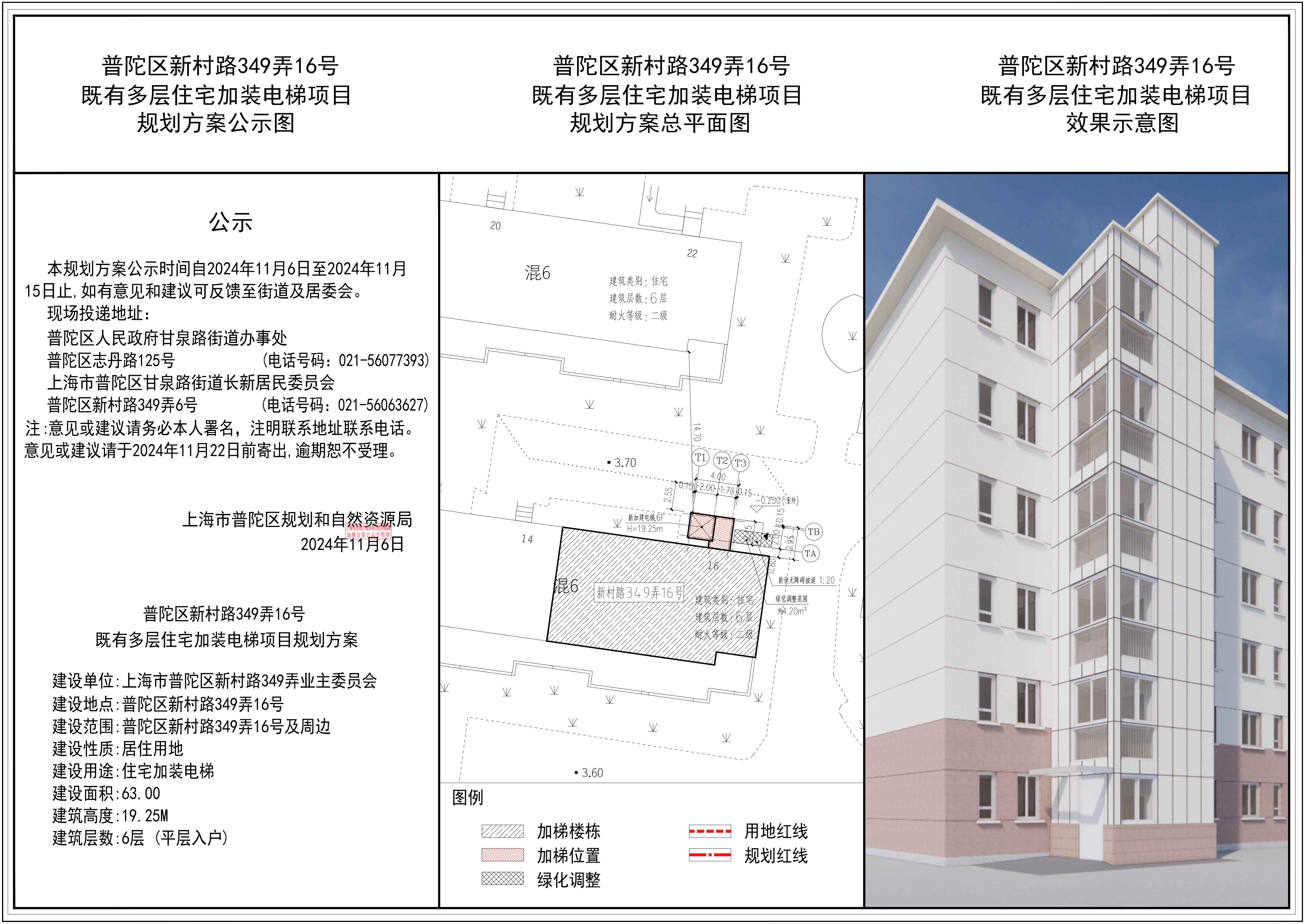 普陀区新村路349弄16号既有多层住宅加装电梯项目规划方案公示
