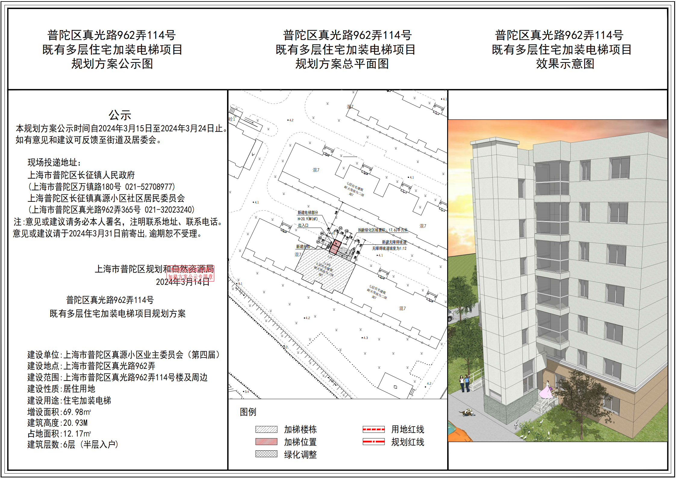 普陀区真光路962弄114号既有多层住宅加装电梯项目规划方案公示