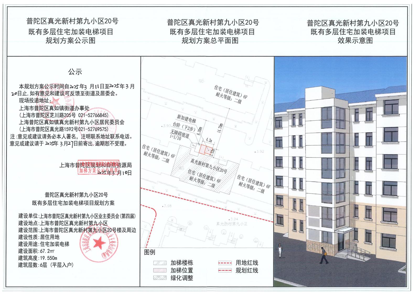 普陀区真光新村第九小区20号既有多层住宅加装电梯项目规划方案公示