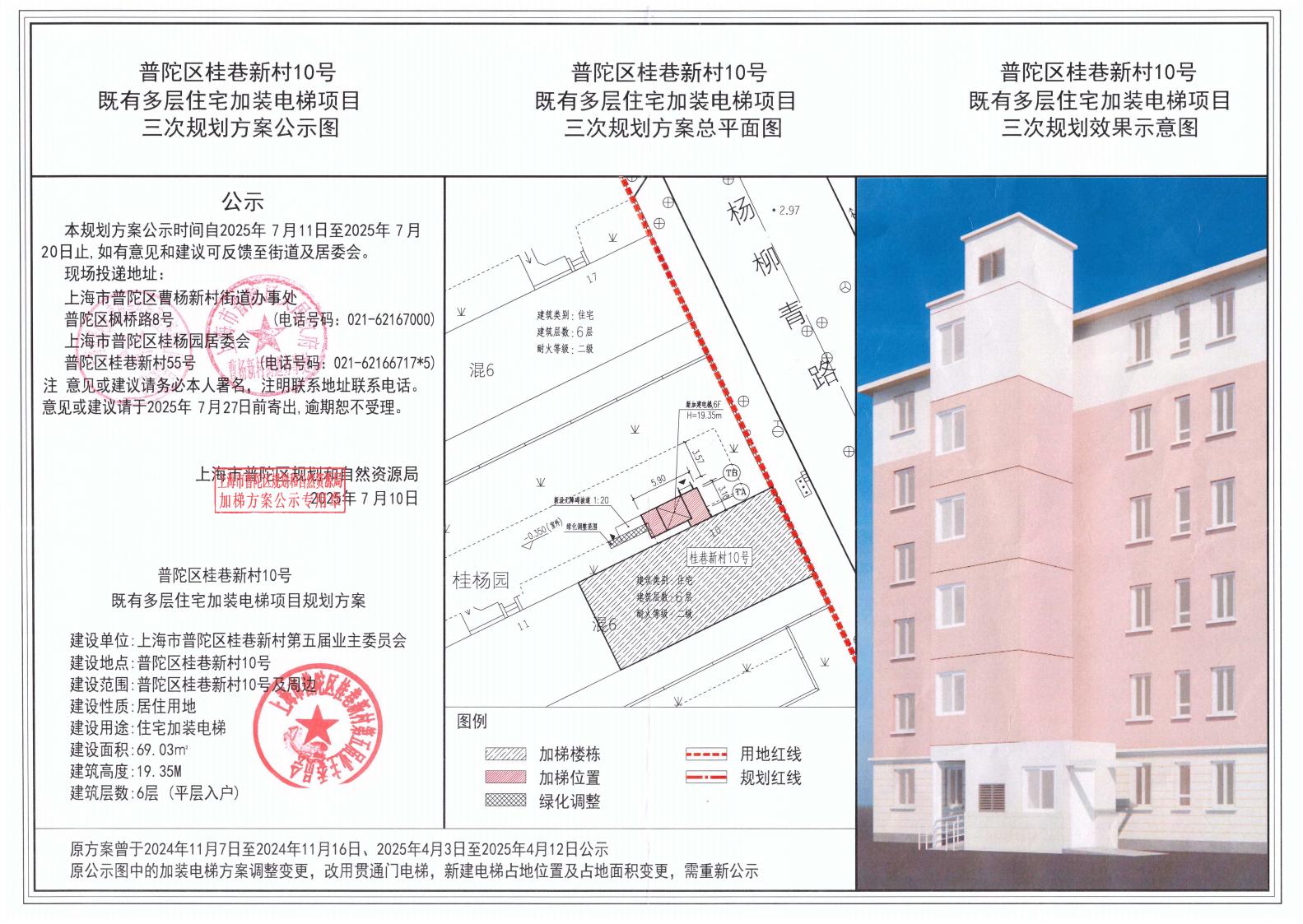 普陀区桂巷新村10号既有多层住宅加装电梯项目三次规划方案公示