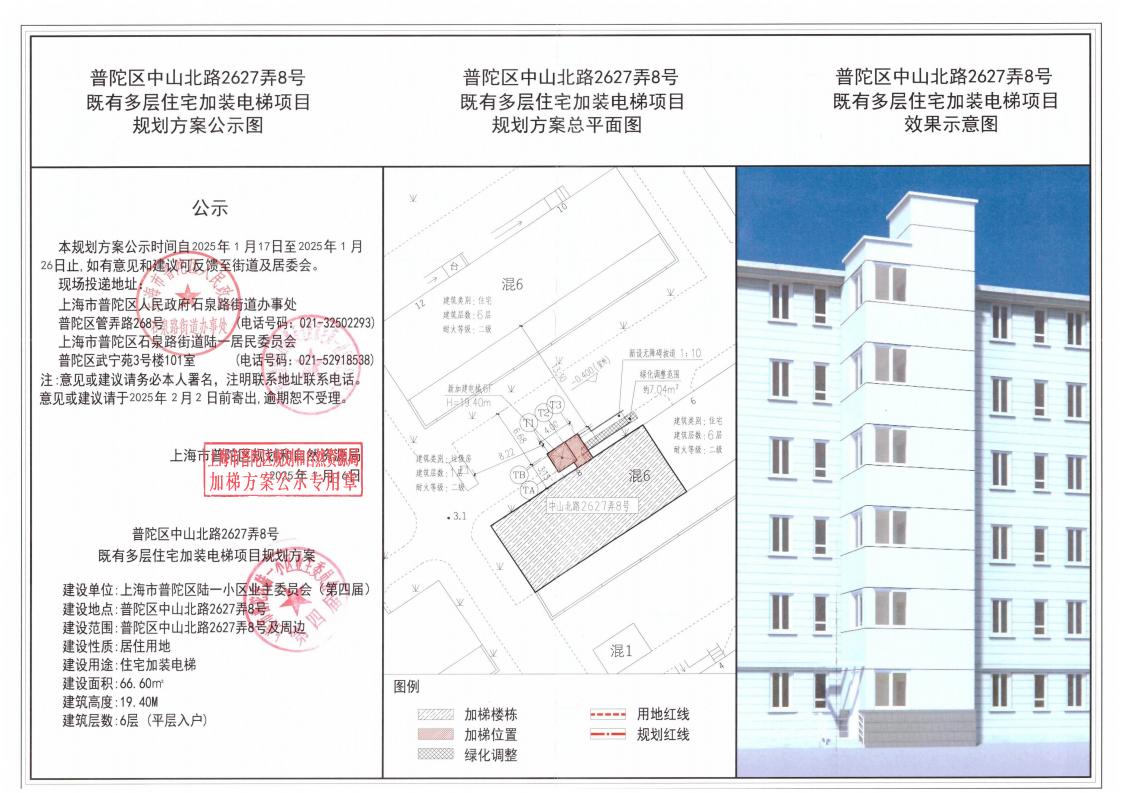 普陀区中山北路2627弄8号既有多层住宅加装电梯项目规划方案公示